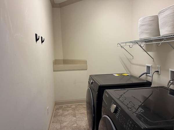 - Dishwasher, Free-Standing Electric Range, Microwave, Refrigerator, Washer/Dryer