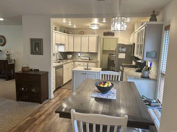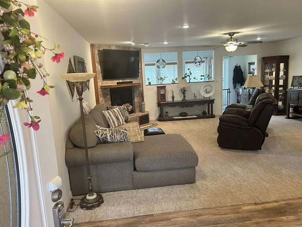 Take a look at this lovely 1,621-square ft home sitting a 4.21 acre site. It offers the perfect blend of tranquility and convenience. With 3 bedrooms, 2 bathrooms, having a split bedroom layout, with master on one side with the other 2 bedrooms and bath on the opposite. 2 large decks for your outside enjoyment and a two-car garage, carport and plenty of parking. The kitchen, remodeled in 2022, has granite countertops, soft close drawers and updated cabinets, providing both style and functionality. The open floor plan creates a seamless flow between the kitchen, dining area, and living space, making it an ideal setting for entertaining friends and family. Enjoy the 4.21 acres of land, offering ample space for various outdoor activities. landscaping, rock walkways and flower garden areas. There are two 12x20 wood storage buildings and 25x33 metal building with two rollup garage doors for a workshop or extra garage. Also has plenty of area for RV and/or trailer parking in the upper circle drive. The property's location ensures easy access to nearby schools, medical facilities, shopping and the lake. Don't miss the opportunity to make this wonderful property yours.