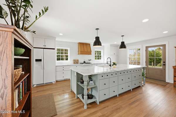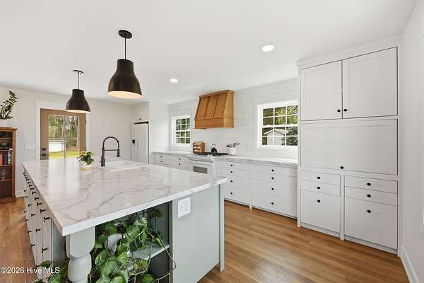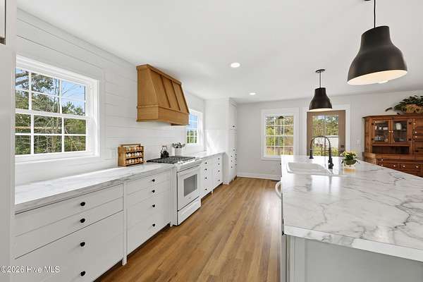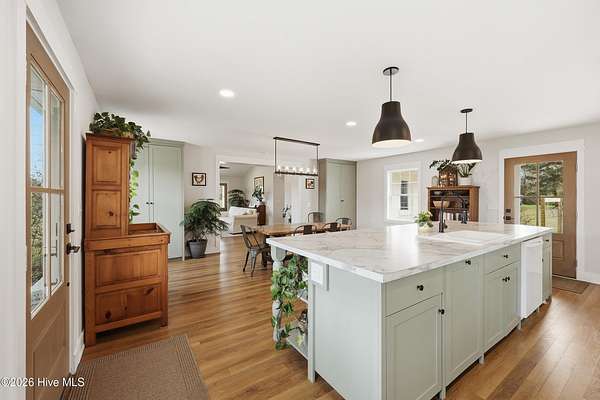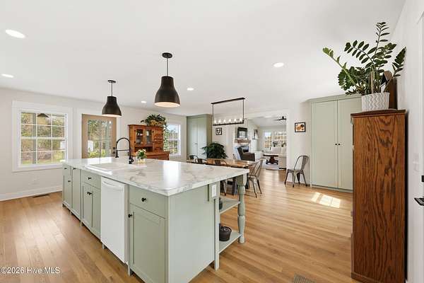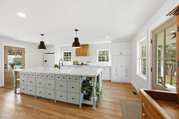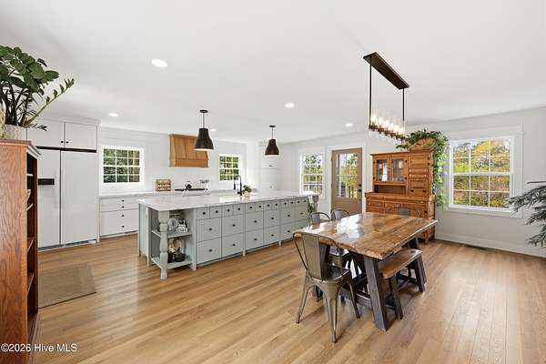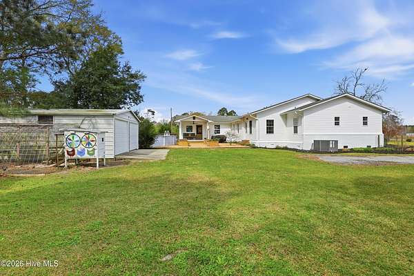 Freedom, Dirt, and a Custom Interior. All Under $500k. This beautiful 2,222 sq. ft. ranch has been fully updated with a focus on quality and utility. Most people think you have to choose between living in a cookie cutter HOA neighborhood near the coast or driving 45 minutes inland to find a real homestead. This property proves you can have both. Located less than 20 minutes from the sand, this 1.54 acre unrestricted tract offers the kind of freedom that is disappearing in Brunswick County. The interior features a semi open floor plan, vaulted rough cut shiplap ceilings, and a massive custom kitchen island that serves as the heart of the home. With 4 bedrooms plus a dedicated office and a heavy duty mudroom/laundry, it is built for a family that actually lives outdoors. The unique value here is the brand new 6 bedroom septic system. Because the home currently uses four, you have the legal capacity to add a guest house, a 2 bedroom ADU, or a detached shop with full plumbing. Since the land is zoned Rural Residential with no HOA, you have the right to build out your legacy without asking for permission. This homestead is a turnkey setup. The property includes three chicken coops (including a large run with an attached kids' treehouse), and raised garden beds. You will also inherit a prolific blueberry bush that produces roughly 20lbs of fruit per season. For the remote workers, fiber internet is at the street and the house is already pre wired for connection. KEY HIGHLIGHTS 1.54 Acres: Flat, dry, and usable land with no restrictive covenants. No HOA: Bring your boat, your RV, and your livestock. Beach Access: Less than 20 minutes to local Brunswick County beaches. INTERIOR FEATURES (2,222 sq ft GLA) Updated Aesthetic: High end LVP flooring, fresh drywall, Custom Rough Cut ShipLap, and custom trim throughout. Vaulted Living Room: Features custom rough cut shiplap ceilings and tons of natural light. Workspace: Dedicated home office separate from the four bedrooms. Primary Suite: Includes private ensuite and direct access to a covered porch. SYSTEMS AND EXPANSION Massive Septic: 6 bedroom capacity provides a clear path for a second dwelling or ''mother in law'' suite. Water and Gas: Private well with insulated well house; 500 gallon leased propane tank. Connectivity: Pre wired for fiber internet that is available at the street.