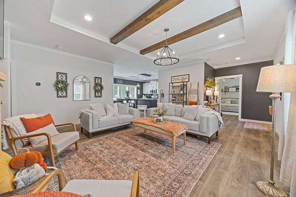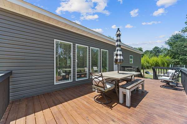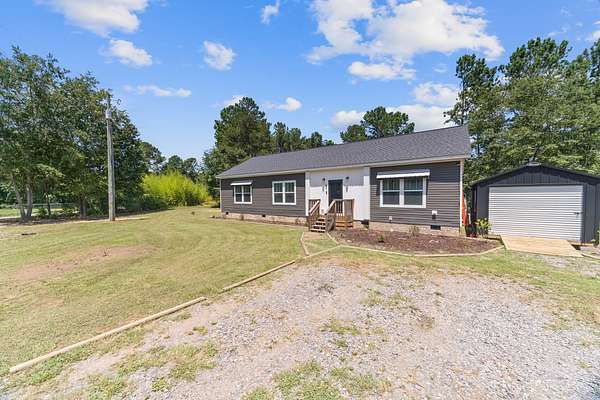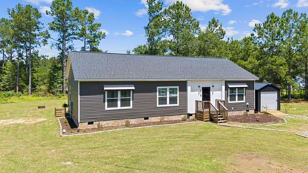 Fall in love with your new home nestled within a wooded and private 2.43 acre lot. Step inside to a professionally decorated and meticulously well kept home, Not a mobile home - not manufactured - a traditional STICK BUILT home! The open concept floorplan combines easy everyday living and functionality with a sleek modern feel. The cozy family room is centered by an eye catching fireplace, built in shelves, and two rustic accent beams which flow into your dining area and kitchen. Enjoy nearly NEW appliances, deep stainless steel sink on the island, plenty of counterspace, storage, and a barn door style pantry. Even the laundry room is pretty y'all - located off the dining area with it's own counterspace, shelving, and cupboard storage. The dedicated laundry room also allows access to the backyard where it'll become a daily dilemma in whether you choose to eat inside or out on the gorgeous deck and patio. At the end of the day you'll find peace and tranquility within the massive primary suite complimented by a walk in closet and a spa bath you must see in person! Separate freestanding soaking tub , enormous dual vanity, and generous modern shower. Bedrooms 2 and 3 both include walk in closets and share access to a lovely full bath. There has been so much love and attention poured into this property from the inside out. The driveway was expanded, landscaped all the way around and seeded to encourage grass growth. SC Housing / USDA / Rural loan eligible. Reach out and schedule your showing today! Storage shed does not convey.