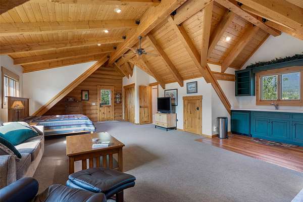 - Additional Living Quarters, Fireplace, Main Level Primary, Vaulted Ceilings