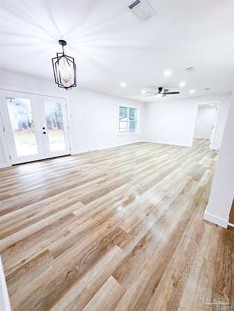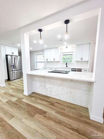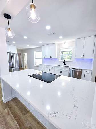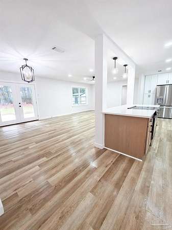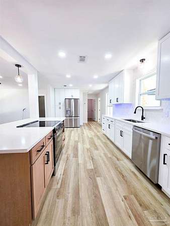 Welcome home to this beautifully remodeled 4 bedroom, 2 bathroom home nestled on 4 private acres right in the heart of Milton! Enjoy the perfect blend of modern comfort and country serenity. Close to shopping, dining, and schools, yet tucked away in a quiet neighborhood with no HOA. This move-in ready property has been completely updated, featuring brand new appliances, LVP flooring, and a new roof for lasting peace of mind. The spacious open concept floor plan creates a seamless flow from the living room to the dream kitchen, which showcases a gorgeous 8 ft island, new cabinetry, and stylish finishes. Perfect for entertaining or family gatherings. The primary suite offers a luxurious escape with a tiled walk-in shower and ample closet space. Each additional bedroom is roomy and bright, providing plenty of flexibility for guests, family, or office space. Step outside to an expansive 15x30 back patio leading to a fire pit area. Perfect for evening relaxation or get togethers. A 12x12 shed and 22x20 carport provide plenty of storage for vehicles, trailers, and recreational toys. Watch deer and wildlife right from your backyard. A rare find this close to town! This property truly has it all. Space, privacy, modern upgrades, and no HOA restrictions. Don't miss your opportunity to own this beautiful in-town retreat at 6350 Greenwood Dr, Milton, FL 32570. Schedule your showing today!