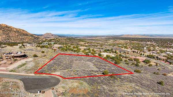 Discover an exceptional nearly 2-acre view lot in the highly desirable Williamson Valley area of Prescott. This stunning parcel boasts unobstructed panoramic views of Mingus Mountain, the San Francisco Peaks, and the red rock beauty of Sedona, offering truly breathtaking scenery in every direction. With gently rolling terrain and abundant space, it provides the perfect canvas for a custom home, private retreat, or equestrian estate. Enjoy peace, privacy, and fresh mountain air, all while being just a short drive from downtown Prescott's charming shops, dining, and community events. A rare opportunity to own a premier view property where natural beauty, open space, and Northern Arizona living come together. Much of the due diligence already completed including septic design, soils testing & preliminary home design. Inquire with agent for details. Site Built homes only in this beautiful neighborhood of Granite Mountain Homesites.