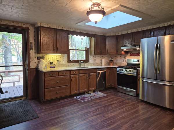 NEW PRICE! 10 awesome secluded acres in Houghton Lake, perfect for someone wanting to just have some space from neighbors, do a little hunting, or ride your toys on the trails. Lots of deer, turkey & wildlife roing the acreage. This home sits back off the road for great privacy and has a wonderful 3+ car garage for the man who loves to fiddle around on things. There's a couple sheds, one would make a good ''she'' shed, the other for your lawn mower & tools. Well maintained & new updates; roof, well, septic, flooring, appliances, & more! Nice quartz counters & VPF in kitchen, Anderson windows, central AC, portable generator & lawn tractor with leaf check out the nice wooded country living setting - but you're close to city amenities! Home warranty included!