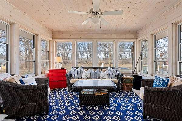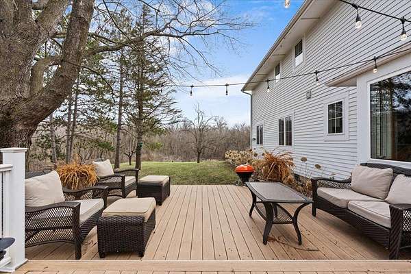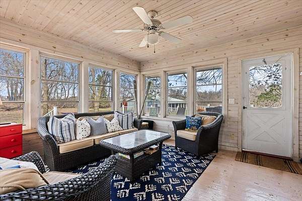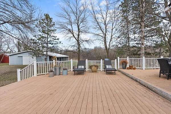 Designed for both everyday living and entertaining, the exterior features an oversized, maintenance-free deck overlooking the expansive acreage. A screened three-season porch extends the living space even further, creating a seamless connection between indoors and out—ideal for enjoying fresh air in comfort across multiple seasons.
