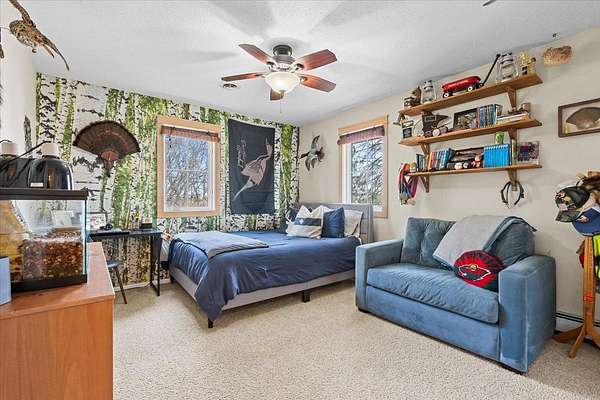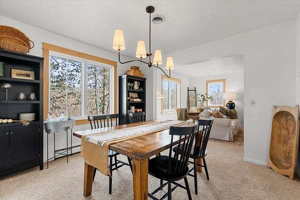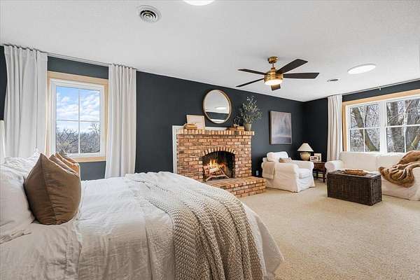 Adding to the property’s charm are its natural water features—a tranquil pond and a gently flowing stream—bringing both beauty and a calming presence to the landscape. A dedicated firepit area creates the perfect setting for gatherings, quiet evenings, and taking in Minnesota’s stunning night skies.