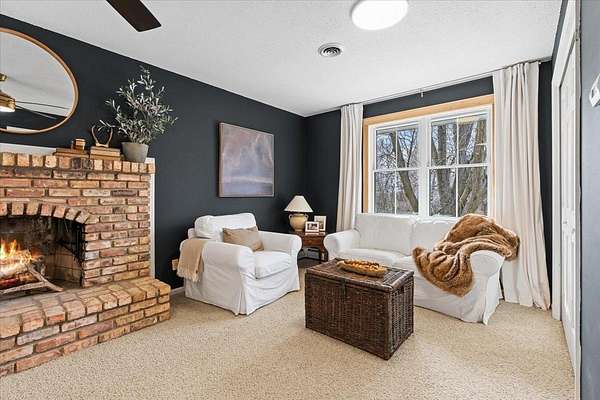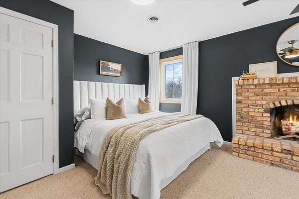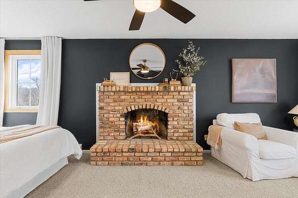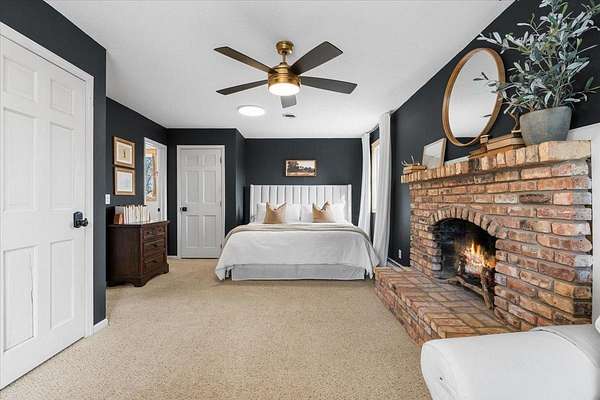 The owner’s suite is a true retreat, featuring a beautiful brick fireplace, generous space, a walk-in closet, and a private en-suite bath. A rare and valuable addition is the dedicated “safe room,” offering flexibility and peace of mind.