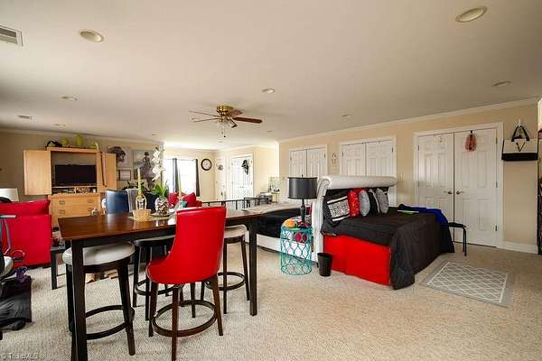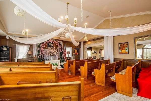 Stately and full of opportunity, this impressive two-story colonial brick home offers over 4,300 square feet of living space with 3 bedrooms and 4 baths, complemented by a rare five-car garage. Privately nestled on 5.13 acres in Randolph County, this residentially zoned property features a valuable special use permit-allowing weddings, meetings, and special events, making it ideal for both personal living and income potential. The home exudes timeless charm while offering expansive space for entertaining, and the separate 1,000 square foot studio apartment above the garage provides the perfect setup for guests, rental income, or a private retreat. With 56 feet of road frontage access from Turnpike, this unique property blends privacy, versatility, and endless possibilities. Wonderful opportunity to own your very own estate and/or a new business venture. Contact agents for more details.