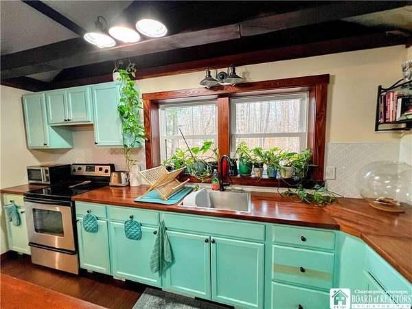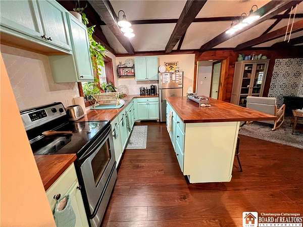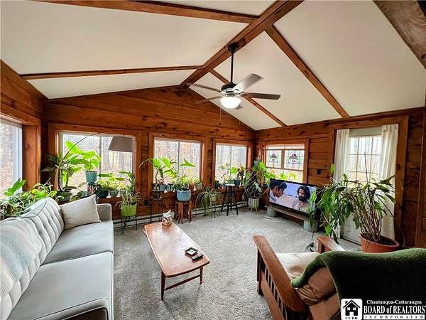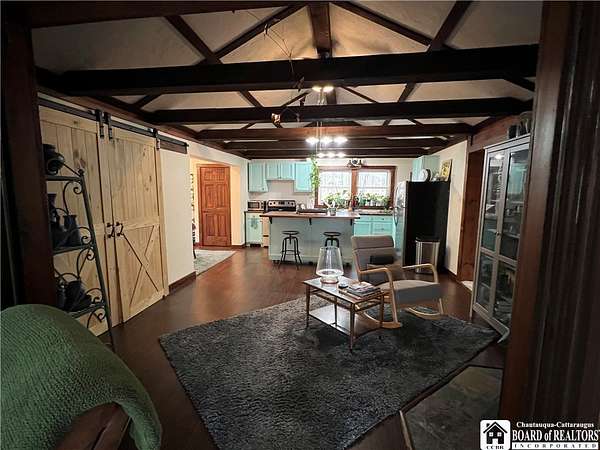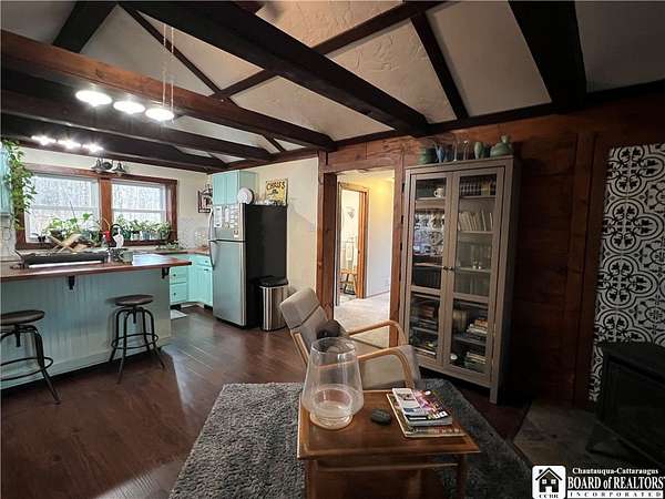 Just what the Doctor ordered. This cozy and comfortable 2-bedroom, 1-bathroom cabin is located just outside the village of Westfield on 1.7 acres. A lovely sitting room welcomes you to this well-cared-for home featuring a bright & sunny kitchen with updated cabinetry, a large island with a seating area that opens to the living room with vaulted ceiling. The family room is spacious and the perfect place to enjoy spending time with family & friends. There are two generously sized bedrooms; the primary bedroom has a vaulted ceiling & is located across from the remodeled full bathroom & the secondary bedroom is off the living room and features a large closet & barn doors for privacy. There is a laundry/utility room at the back of the home, new hot water tank, new pressure tank & you have access to the backyard & deck. This serene, private space is heavenly with the sights & sounds of nature, a large shed for storage & a firepit. This home is perfect for a full-time residence or a perfect place to get away & relax. Located just a short drive from all the conveniences of Westfield, minutes from the Chautauqua Institution, Barcelona Beach, and more!