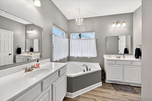 - Custom Cabinetry, Double Vanity, Eat-In Kitchen, High Ceilings, Kitchen/Dining Room Combo, Pantry, Vaulted Ceiling(s)