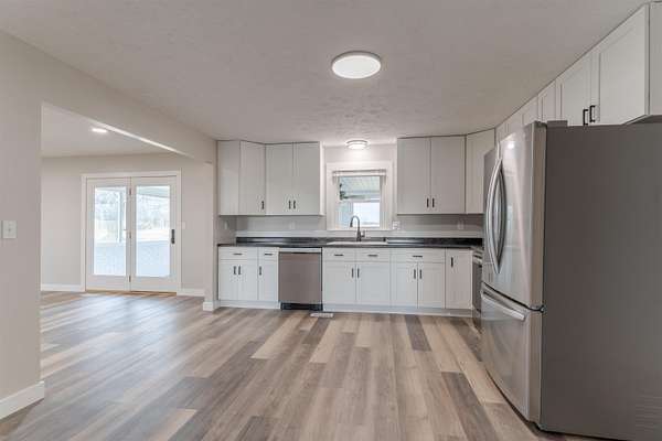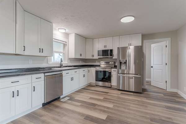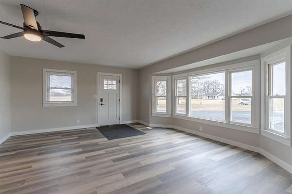 Beautifully remodeled 4-bedroom, 2-bath home on 1.89 acres with a detached 2-car garage and tool shed. This home has been completely updated from top to bottom, featuring a durable metal roof, all-new siding, windows, and doors. Inside, you'll find new sheetrock, modern lighting; fresh paint, carpet and laminate flooring throughout. The kitchen shines with new cabinetry, countertops and stainless steel appliances. Both bathrooms have beautiful granite countertop vanities. A huge sunroom stretches across the back of the home, offering the perfect space to relax and enjoy peaceful views of the property. You will love all of the sunlight that flows through this open-concept home. There are two large living spaces that you could use or make one of them a spacious formal dining area. Plenty of room to spread out, both inside and out--this move-in-ready home combines modern updates with country-style space.