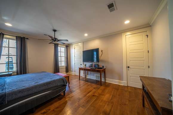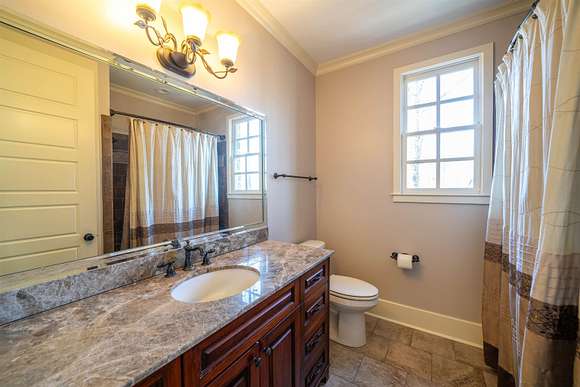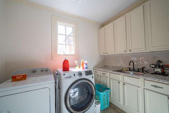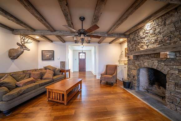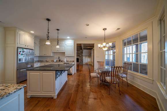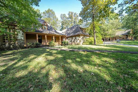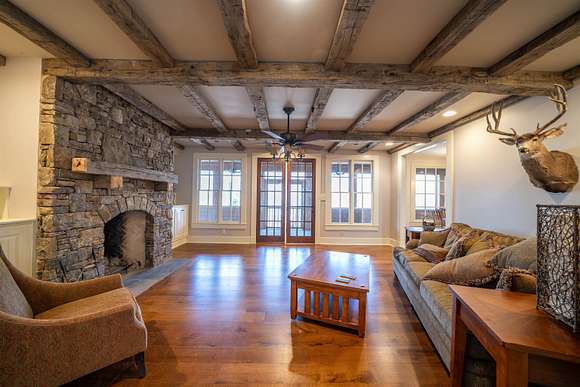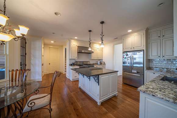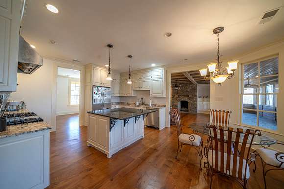 Luxury Home in the Country on 10.6 acres with a second multi use building garage/workshop/office/basement combo building and lots of concrete for parking areas. Home features hardwood floors throughout 1st level with tile in baths. Kitchen features center island w/breakfast bar, granite tops, farmhouse sink, gas cooking, bayed breakfast room. 3 bedrooms down, 2 full baths, great room w/wood burning stone fireplace and rustic beams, large laundry room featuring a sink, granite tops & lots of caibnets, two large pantries. 3 gas HVAC units. 3 car garage, 53 x 10 screened back porch facing lake. The property features a smaller pond and a jointly owned larger lake with several piers and stocked with fish. Two wells, one dedicated to house and second dedicated to the lake. Higher fenced chicken yard with laying house coop. Fenced area for small livestock. Garden with raised beds and has producing muscadine vines and blueberry bushes. More features on this property than this space allows.