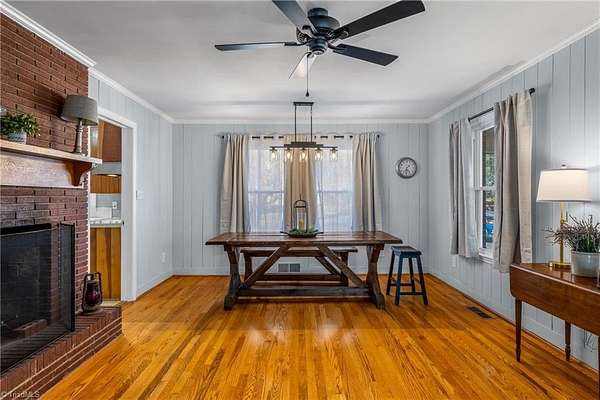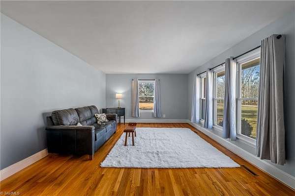 Classic brick ranch built in 1960 and nestled on a spacious 1.66-acre lot in Pfafftown! This well-maintained home offers timeless charm with thoughtful updates, including fresh interior paint and updated lighting throughout. Bautifully maintained hardwood floors gleam in the sunlight. Enjoy abundant natural light in the large sunroom, perfect for relaxing or entertaining, along with a screened porch overlooking the peaceful backyard. The property features exceptional parking and storage options with a basement garage, attached carport, and a large detached garage/workshop--ideal for hobbyists, extra vehicles, or equipment. With plenty of outdoor space and a serene setting, this property offers both comfort and versatility just minutes from local amenities. Dual fuel HVAC system will keep you toasty on those cold winter days, and with a generator already in place, you will be well-equipped for any power outages in the area.