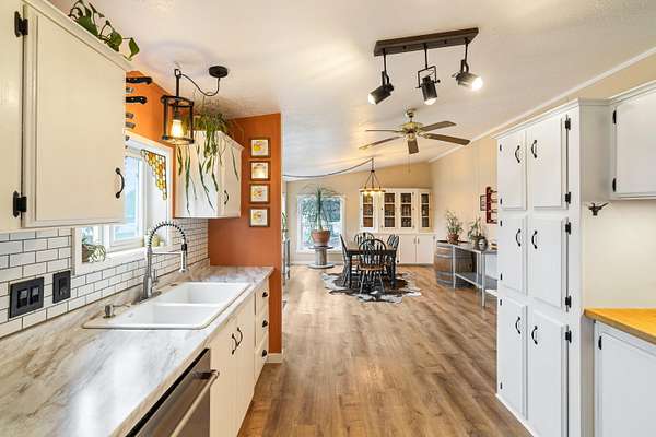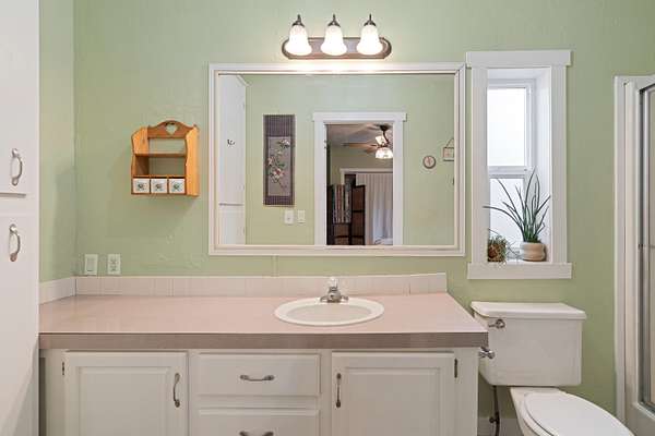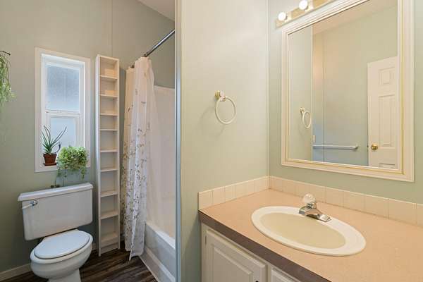 - Ceiling Fan(s), Laminate Counters, Linen Closet, Open Floorplan, Primary Downstairs, Shower/Tub Combo