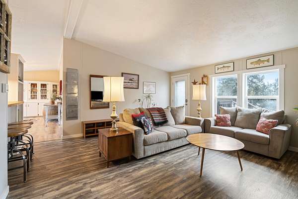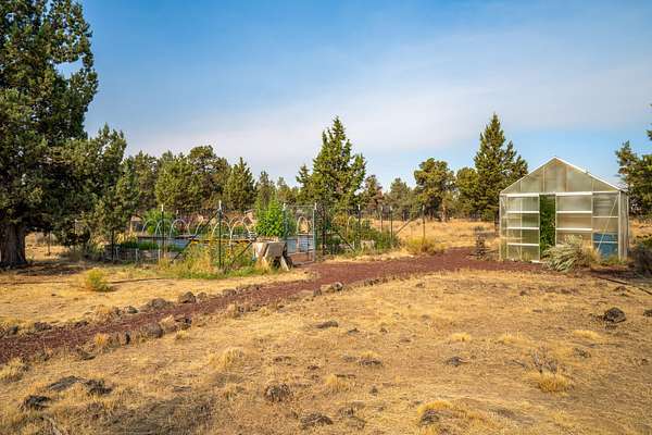 Super cute and lovingly maintained on 5 large, treed acres. The residence sits a few hundred feet into the lot, for added privacy and space. The layout offers a huge dining room, two decks, and nice separation between the primary suite and guest bedrooms. Gardeners will delight in the completely fenced-in garden area with raised beds and a dedicated greenhouse. There's also a handy shed for tools and implements. Commuters will especially love the convenient location near the entrance to Crooked River Ranch. All the hard work has been done!