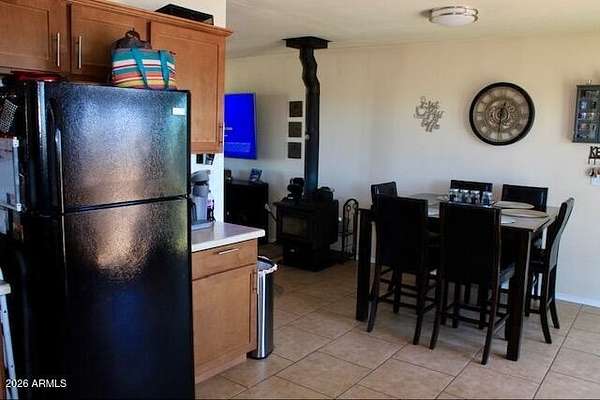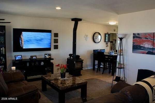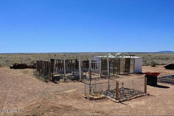 Experience true Arizona independence with this off-the-grid retreat in the scenic community of Chevelon Canyon Ranch. Set on 37.5 private acres, this property offers unmatched peace, privacy, and wide-open skies. The home lives larger than expected, featuring two generously sized bedrooms and a well-appointed bathroom. The expansive kitchen and dining area provide plenty of room to gather, with a gas stove perfect for home-cooked meals. A cozy family room with a wood-burning stove creates a warm and inviting space during cooler months. Take in endless panoramic views from both the front and back porches--ideal for enjoying quiet mornings and breathtaking sunsets. Designed for self-sufficient living, the property includes owned solar and wind power, a conventional septic system, a 3,000-gallon water tank, and a rainwater harvesting system. Water can also be conveniently hauled from the nearby community source less than a mile away. The land is thoughtfully improved with partial fencing, a large fenced chicken coop, a dedicated goat enclosure, fenced garden areas, a greenhouse, and mature fruit trees--perfect for those seeking a sustainable lifestyle. Enjoy the perfect blend of modern comfort and off-grid living in this exceptional Northern Arizona escape.