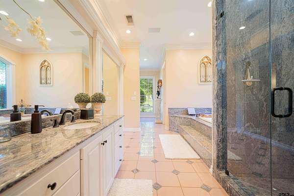 Welcome to the GW Ranch! This picturesque estate sits on +-75 acres of rolling hills just outside Omaha, TX. Drive through the gated entrance to be greeted with the stately main home that is over 6200 square feet with 4 bed 4 bath plus 2 half baths. Walk in the front door to a winding staircase and huge floor to ceiling windows that give you an unbelievable view of the shared 15 acre lake. The newly remodeled kitchen features Viking appliances and an extensive 15 ft island that's sure to impress. The state of the art theatre room is the perfect place to kick back with the kids and have a family movie night. The land features rolling hills of highly improved pasture and great fencing for your livestock. The ranch is conveniently located only 2 hours to DFW, and less than 1.5 hours to Tyler for a quick and easy commute. Whether you're looking for a turn-key ranch, an event venue, or simply a new place to call home, the GW Ranch is sure to exceed all expectations so call today for your private tour!