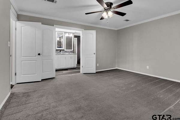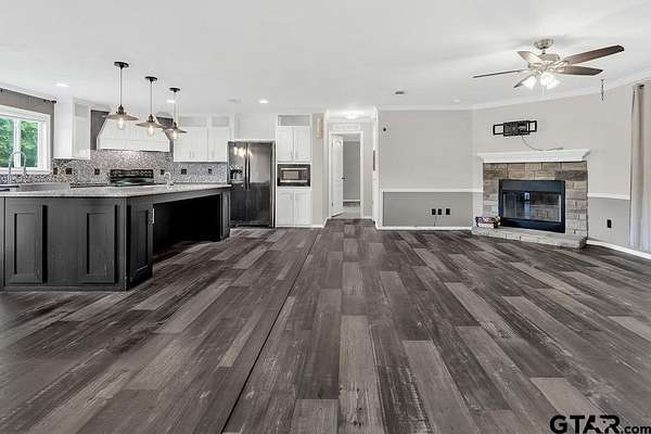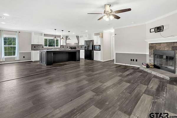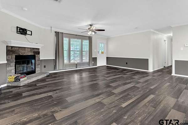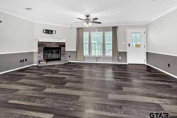One of a kind rural property in sought after Hallsville ISD!!! Come see this spacious beauty situated on a 5-acre lot with a spring fed creek and a well-stocked pond! This lovely home boasts granite countertops and glass block backsplash, fresh paint, flooring, lots of updates! Move in ready AND unrestricted, this property has a huge, covered porch, a chicken coop with water and electric, a water well and so much more! Country living at its finest! Inside and out, this property is everything you need, 5 bedrooms, 3 baths, huge kitchen with amazing pantry, a large living area and the master bath is so incredible you have to see it to believe it with a huge glass walk in shower, his and hers areas with vanities, separate sinks, a large garden tub, 2 walk in closets! Call for your showing today!!