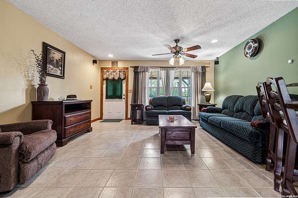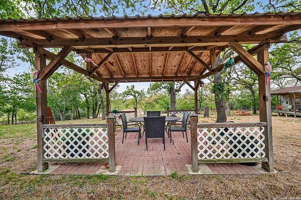 Escape to your own private slice of Texas Hill Country on 10 breathtaking acres in Kingsbury, TX just past Seguin. This unique property offers the perfect blend of peaceful country living with endless possibilities. The main single-family residence is full of character and warmth, featuring a cozy wood-burning stove, perfect for quiet evenings at home. The home also offers a covered patio and a nearby gazebo, creating inviting outdoor spaces to relax and enjoy the natural surroundings. In addition to the main home, the property includes a detached pavilion or guest space featuring a wrap-around porch, ideal for entertaining, gatherings, or extended living. There is also a separate structure that can serve as a studio, office, or flex space. The land is well-equipped with a barn and storage shed, making it ideal for animals, equipment, or those seeking a functional rural lifestyle. Whether you are looking for a homestead, weekend retreat, or investment opportunity, this property offers space, privacy, and freedom, all within a convenient drive to nearby cities. Come experience the charm, versatility, and wide-open Texas skies for yourself.