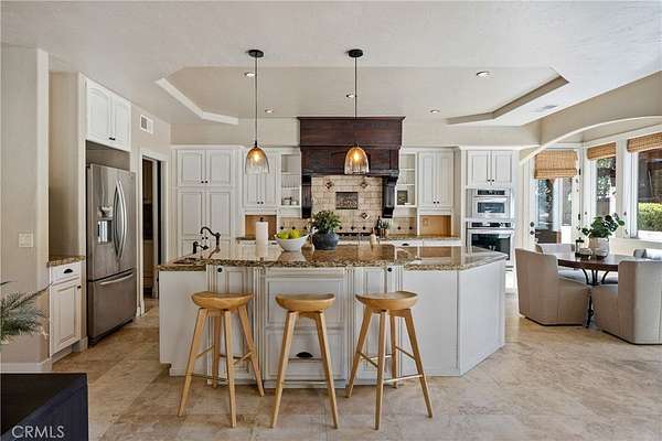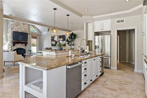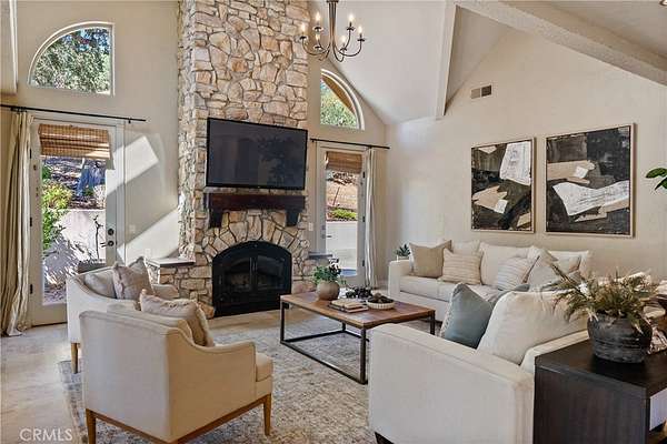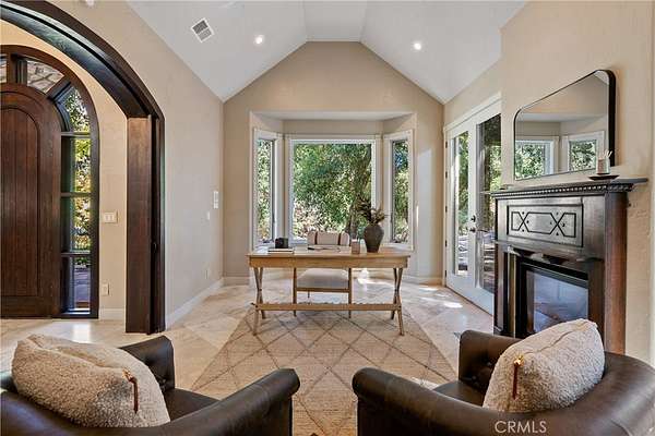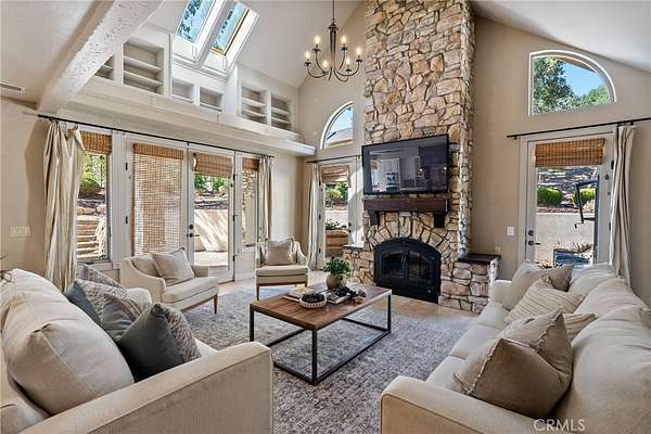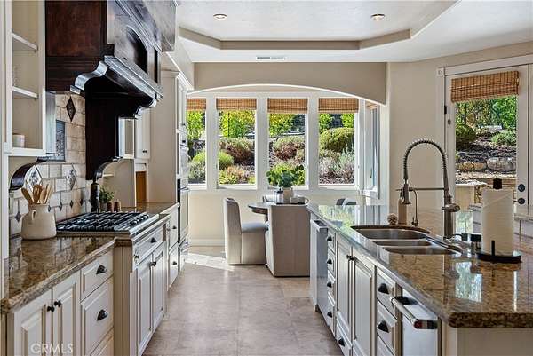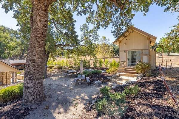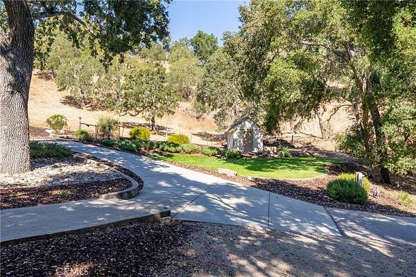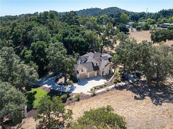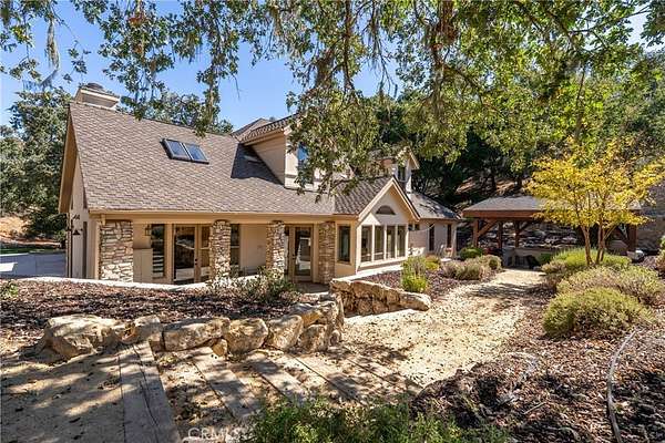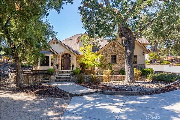 From the moment you arrive, this exceptional 3636 sf, 4 bedroom, 4 bathroom home makes a statement. The extensive exterior stonework and custom arched front door welcome you into a space where craftsmanship and comfort blend seamlessly. Step inside the grand entry with soaring 13-foot ceilings and travertine tile flooring that flows throughout most of the main level. Just off the entryway, a formal dining room with French doors offers elegance and versatility. Continue into the expansive living room, where natural light pours in through skylights and multiple French doors, and a wood-burning stove adds warmth and character. At the heart of the home, the chef's kitchen is a dream come true -- featuring granite countertops, stainless steel appliances, custom cabinetry with pull-out drawers and an attached wet bar complete with granite counters, a beverage fridge and built-in wine storage. It's ideal for both everyday living and entertaining. The main floor office provides a quiet retreat with its gas fireplace, French doors and private patio access -- perfect for working from home or a cozy library. The primary suite is truly a sanctuary, boasting a spacious sitting room with built-in bookshelves, a serene bedroom and a spa-inspired ensuite bath. Enjoy a jetted tub, dual vanities, a walk-in closet and a stunning rock-surround walk-in shower. Upstairs, you'll find three generously sized guest bedrooms, two bathrooms, a flex room with built-in desk and loft bed plus a bonus room with cabinetry and plenty of space to customize -- ideal as a playroom, exercise room or anything you need it to be. Step outside to your private backyard retreat: a covered patio with built-in BBQ, concrete countertops, sink, burners, beverage fridge, fireplace and mounted TV -- designed for year-round enjoyment. As a unique bonus, the property includes a charming tiny home featuring A/C, kitchenette, bathroom and a loft sleeping area -- perfect for guests, extended family or creative space. This home is nestled on 1.6 oak-studded acres on a private drive, offering a true sense of seclusion. Despite its peaceful setting, it's conveniently located near downtown Atascadero, with easy access to the freeway and local schools. This home feels like something out of a storybook -- and now, it's ready to be part of yours. Please review the Virtual Tour for additional information.