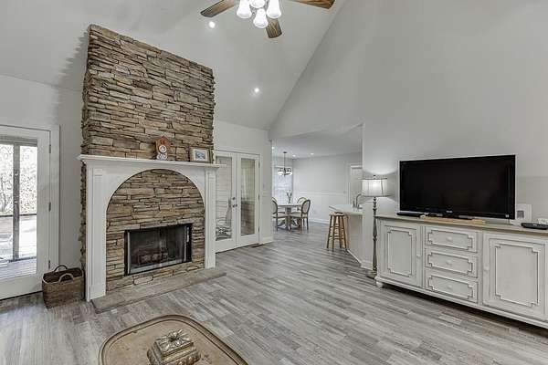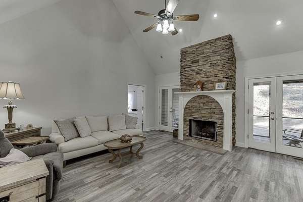 Total seclusion meets timeless Comfort in North Forsyth. Discover the ultimate private retreat on 5 wooded acres, tucked away where the house remains completely hidden from the street, this meticulously maintained traditional ranch home on a full basement that offers the perfect blend of Luxury and Cozy. The large cover front porch which is perfect for rocking chairs and wraps around the side of the home to a wooded deck that is handicap accessible. The heart of the home is a dramatic two-story vaulted great room featuring a stunning floor to ceiling wood-burning fireplace. Hardwood style luxury vinyl flooring flows throughout the main level, leading to a bright eat-in-kitchen boasting all new appliances that overlook both the breakfast area and the great room. For more formal occasions, enjoy the dedicated dining room. Transition seamlessly to outdoor living on the large screen-in-porch your front row seat to nature. The primary suite is a true sanctuary, featuring a spacious walk-in closet and a well-appointed ensuite with a custom tile walk-in-shower. Two additional large secondary bedrooms, a functional mud room with storage, and a dedicated laundry room with a sink. If you want more space the massive basement is a world of its own, featuring a full bath, three flex rooms (perfect for offices, gym and theater), a utility room, additional storage, a workshop, and its own full garage. This home also offers an oversized 2-Car detached garage with a versatile flex room above which is ideal for a studio or guest suite. It also offers a whole house propane Generac generator and a whole house water filtration system. Lastly the roof was replaced in Oct 2025. Experience total privacy without sacrificing convenience. The North Georgia gem is ready for its next chapter. New water Heater Jan 2026