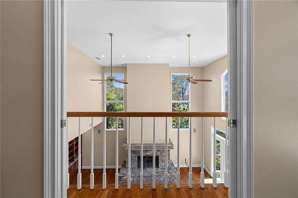 - Ceiling Fans(s), Kitchen/Family Room Combo, Open Floorplan, Primary Bedroom Upstairs, Solid Wood Cabinets, Stone Counters, Thermostat, Vaulted Ceiling(s), Walk-In Closet(s), Wet Bar