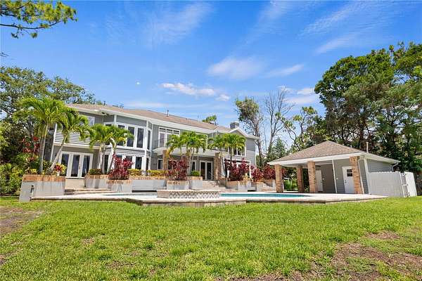 Welcome to one of Pinellas County's most distinguished private estates, located within the esteemed Seminole Golf & Country Club in the highly sought-after Pinellas Farms neighborhood. Set on an expansive 1.04-acre waterfront parcel, this exceptional property offers unparalleled privacy, versatility, and timeless appeal. The main residence spans approximately 4,995 square feet and features 4 bedrooms, 5 full bathrooms, and 1 half bath, along with a dedicated office/gym that can easily function as an additional bedroom, offering ideal flexibility for multigenerational living, guests, or remote work. Garage parking accommodates up to three vehicles. Designed for both everyday comfort and entertaining, the home showcases a resort-style pool and spa, a full outdoor bath, generous poolside storage, and an additional outdoor kitchen area--perfect for year-round gatherings. Mature, lush landscaping frames the estate and enhances the sense of privacy, while the expansive grounds provide endless possibilities. Zoned for horses, the property includes a converted stall and ample open land, making it ideal for equestrian use or future expansion. Enjoy tranquil waterfront living just minutes from award-winning Gulf beaches, top-rated schools, fine dining, shopping, and major thoroughfares. Downtown St. Petersburg, Tampa International Airport, and St. Pete-Clearwater Airport are all easily accessible. This is a rare opportunity to own one of the largest privately held waterfront estates in Seminole--truly a once-in-a-generation offering.