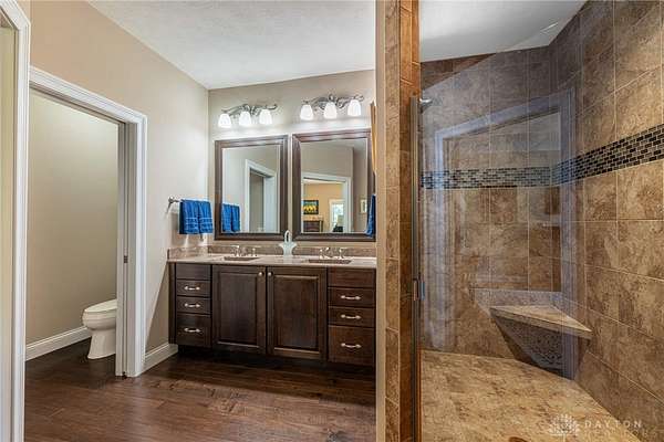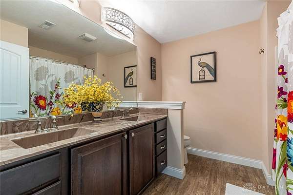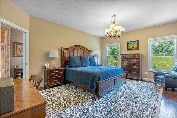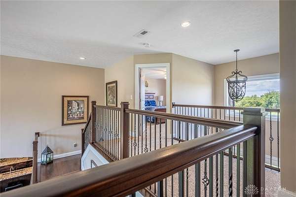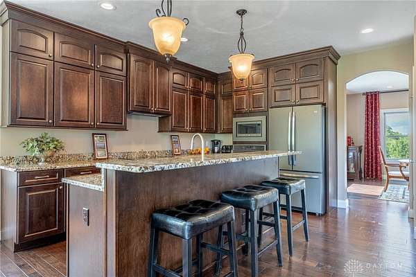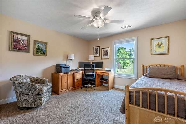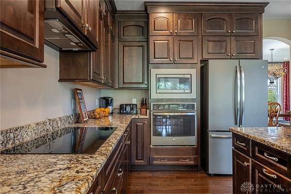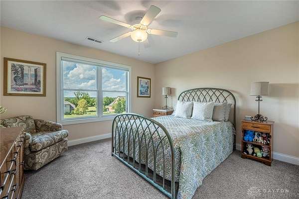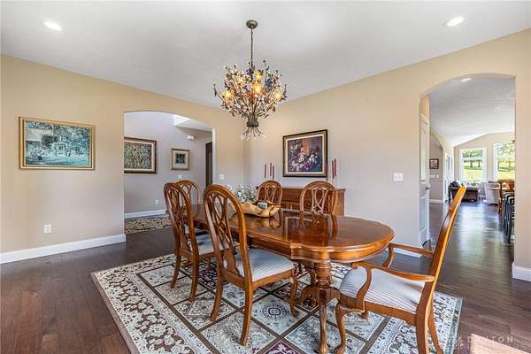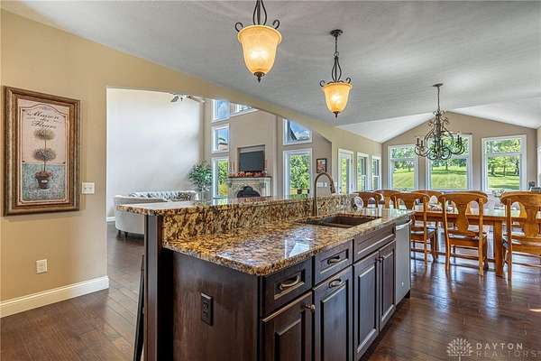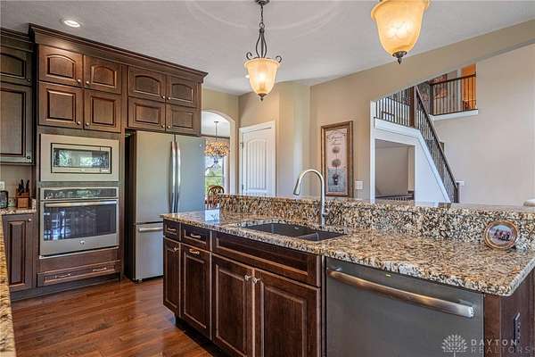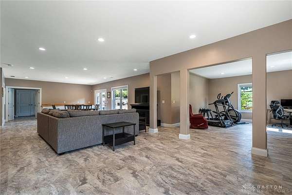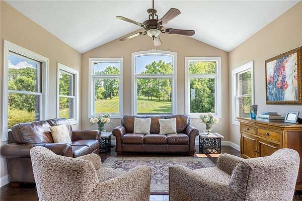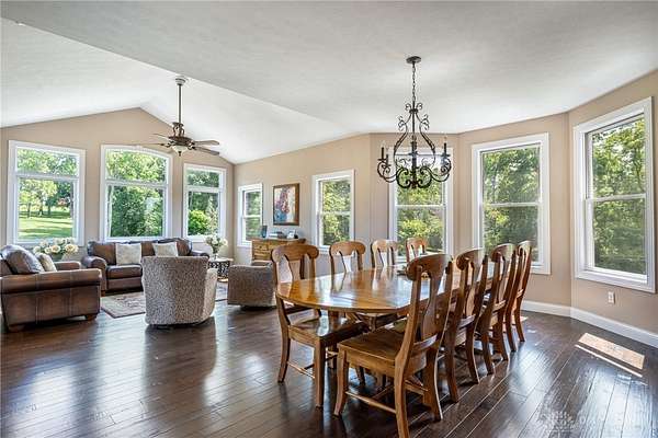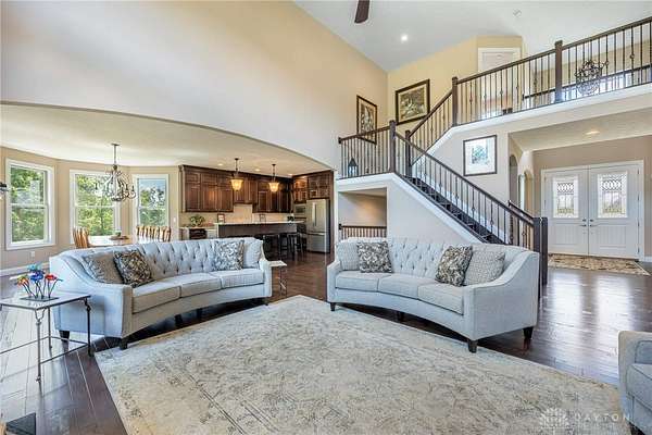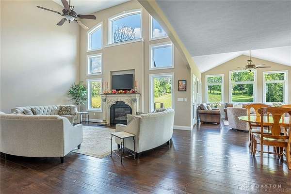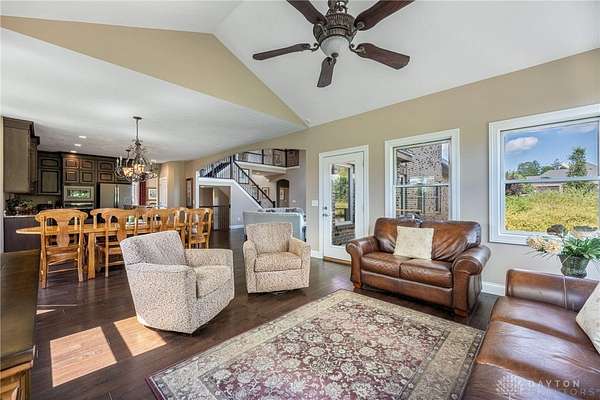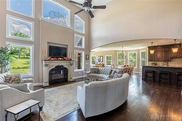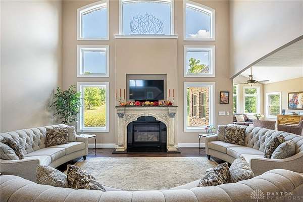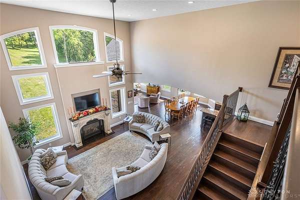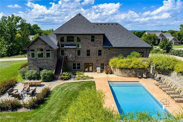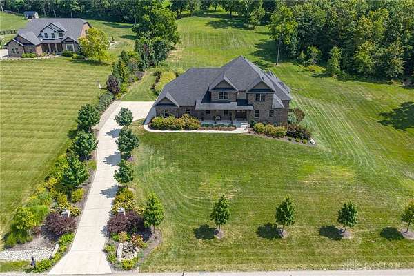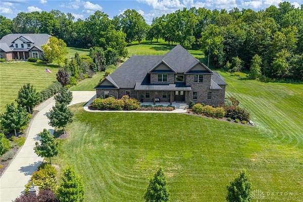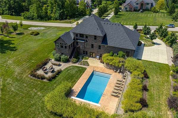 Private Luxury in Waynesville! This stunning 2-story home with a walkout basement sits on 2.24 acres in a quiet neighborhood next to the lake and state park. It offers the feel of country living with modern conveniences. Inside, the open concept floor plan is filled with natural light from oversized windows. The great room impresses with soaring 20-foot ceilings and a faux stone fireplace, while the sunroom with cathedral ceilings provides the perfect spot to relax. Hardwood flooring flows throughout the main level. The extra-large laundry room offers closets, hanging space, and the ability to close it off when entertaining. The walkout basement is designed for entertaining with waterproof flooring, a recreation area, and a separate room with sink, counters, and appliances. Walkout access is available on two sides, has a workshop with direct access to the garage, and the basement is already plumbed and laid out for an additional bedroom, bathroom, or office. Outdoor living is equally impressive with a heated 18x38 in-ground pool featuring a new automatic cover, DE filter, gas heater, a stamped concrete surround extensive lush landscaping, and a large paver patio. Additional highlights include an oversized 3.5-car garage (23'8" deep) with three 9'x8' doors, built-in shelving, and direct workshop access. The home was built with 2x6 construction, spray foam insulation, and brick for high efficiency, plus a water manifold system with individual shut-off valves for each line. Technology and security upgrades include Cat 6 to soffit locations for optional cameras, and a security system with glass breakage and fire detection. Offering the perfect blend of privacy, luxury, and convenience with easy access to State Routes 73 and 42, this property is more than just a home, it's a retreat.