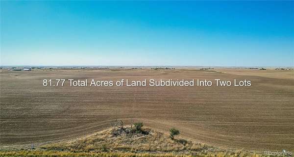 81.77 ACRES OF LAND CLOSE IN. 51.4 ANNUAL ACRE FEET OF DETERMINED WATER RIGHTS INCLUDED. PROPERTY HAS ALREADY BEEN SUBDIVIDED INTO 2 PARCELS- A 46.32 ACRE LOT AND A 35.45 ACRE LOT (BEING SOLD AS ONE). PERFECT FOR ANYONE WANTING TO BUILD THEIR DREAM HOME, SMALL RANCH, ETC. ELECTRICITY AND FIBER INTERNET IN CLOSE PROXIMITY. VERY USABLE FLAT LAND. EASY TO BUILD ON. COUNTY MAINTAINED ROADS! NO HOA! CURRENTLY PLANTED IN WINTER WHEAT (PROJECTED HARVEST JULY 2025-CROP LEASE 1/4 PROFIT TO LANDOWNER) PARCEL IS CONVENIENTLY LOCATED SOUTH OF QUINCY. EASY ACCESS TO BYERS, STRASBURG, BENNETT, I-70 AND E-470. DON'T MISS OUT! *PLEASE DO NOT DRIVE ON THE LAND AS IT IS PLANTED*