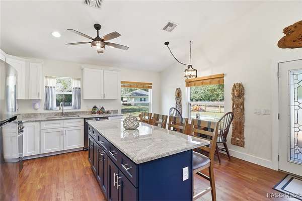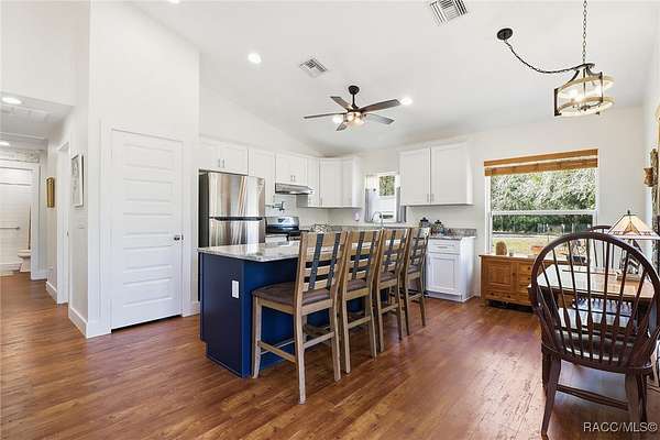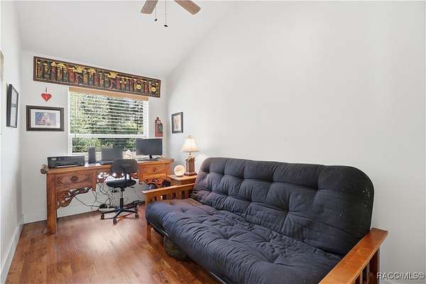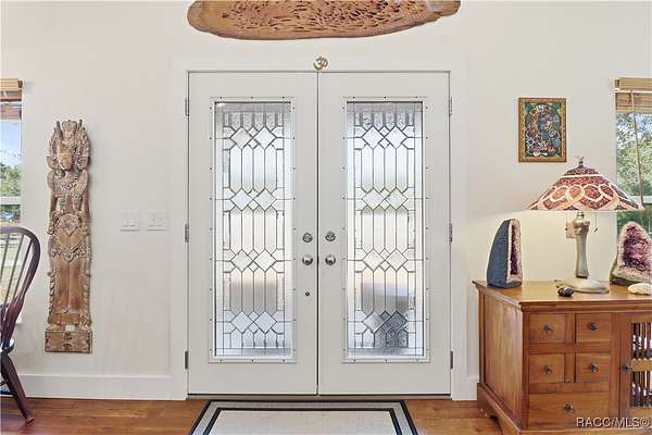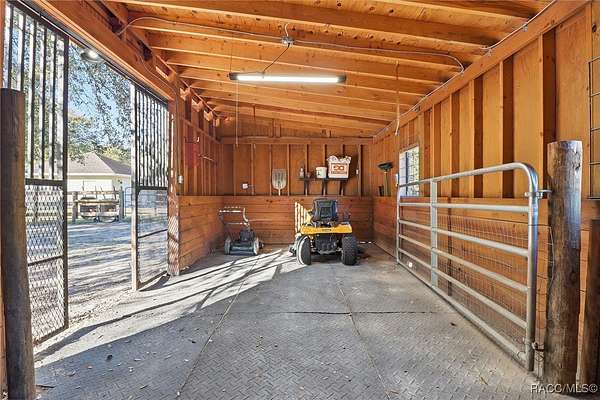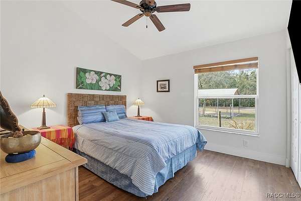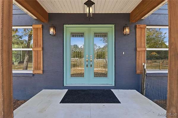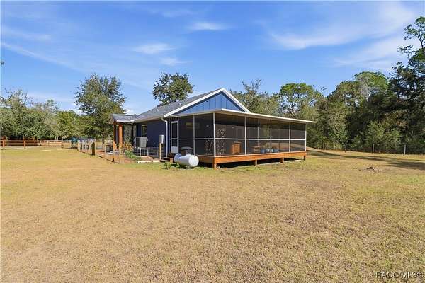 Beautiful Turnkey Farmstead with Modern Custom Home on 3.98 Acres with River Access Beautiful 2-bedroom, 2-bath custom block home on a stem wall, just 18 months old, situated on two combined lots totaling 3.98 acres. This peaceful, secluded property features a fully fenced cleared area and a surrounding wooded section with mature cypress, oak, and pine trees. Enjoy river access and access to Big Blue Springs for recreation, kayaking, and swimming. There is potential to build on the additional lot for expansion, guest quarters, or investment. An adjacent 1.7-acre lot is also available for separate purchase, which would bring the total property size to over 5.7 acres. The home includes a versatile flex room-perfect for an office, guest space, or additional bedroom-and a convenient mudroom/laundry combination with a separate entrance, ideal for muddy boots after tending animals. Inside, enjoy granite countertops, custom cabinetry, and luxury vinyl flooring throughout. The propane stove/oven, tankless water heater, and blown-in attic insulation provide comfort and efficiency. The spacious 16x32 screened lanai, accessible from the master bedroom, is ideal for relaxing and enjoying the tranquil setting. The property includes a full RV pad with hookups, 1-acre irrigated pasture, 2-stall barn with power and fan, 50x60 corral with water, multiple fenced gardens, fruit trees, greenhouse, two chicken coops, and a 16x50 goat pen. The 2-car garage/workshop has both electric and water service, perfect for projects or equipment cleaning. This is a turnkey farm-ready to move in with your animals-and a peaceful retreat offering the best of country living. Located just 30 minutes from the World Equestrian Center, this property combines self-sufficiency, comfort, and natural beauty in one exceptional package.