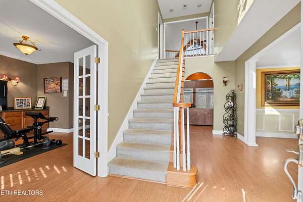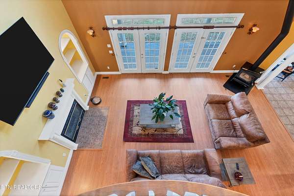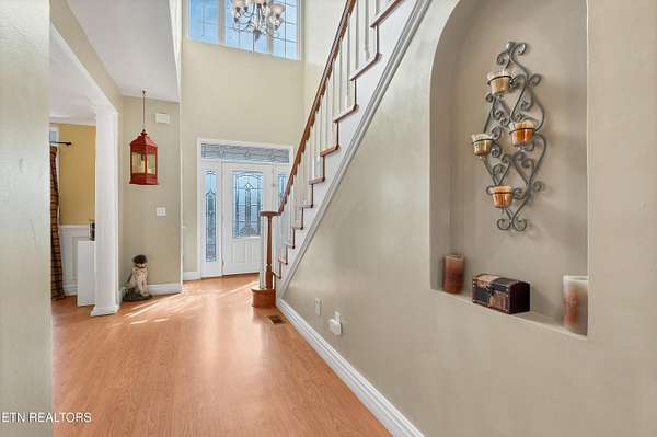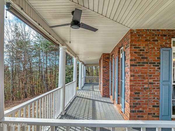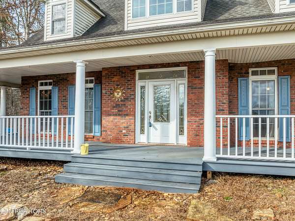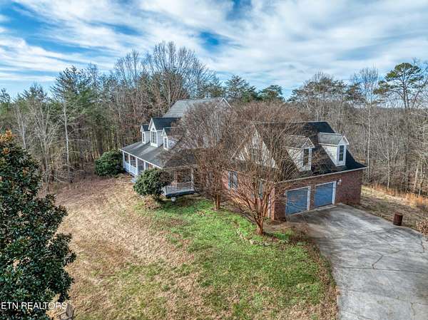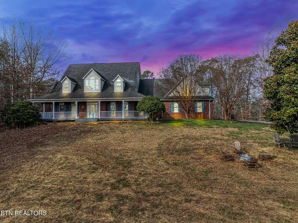 Custom brick home on 5.28 acres in a quiet enclave of estate-sized homes, each set on 5-10 acres. A tree-lined driveway leads to this thoughtfully designed 4-bedroom plus office/craft room, 4 bath residence with wraparound porches and timeless curb appeal. The street ends in a cul-de-sac, offering privacy and minimal traffic. Inside, the open floor plan features high ceilings, abundant natural light, and two fireplaces. The primary bedroom and bath are on the main level along with a dedicated office/craft room and a spacious laundry room. Three bedrooms are upstairs, plus a walk-in attic for easy storage. The finished basement offers a huge rec room, bathroom, guest room, a see-through fireplace, and French doors opening to a private backyard-ideal for entertaining or multigenerational living. Additional highlights include a 2-car garage plus workshop, zoning for horses and barn and restrictions designed to protect property values while allowing flexibility. No HOA fees. Private road with maintenance agreement. All appliances convey, including washer, dryer, wood-burning stove, pool table, and built in safe.Priced as-is at $125.44 per square foot-a compelling value. Buyer may perform inspections. Enjoy country living just minutes from Lenoir City or Maryville for shopping and dining. Only 8 minutes to Whispering Cove Marina on Fort Loudoun Lake, 20 minutes to McGhee Tyson Airport, and 45 minutes to Great Smoky Mountains National Park. A rare combination of space, privacy, and convenience-priced to sell.
