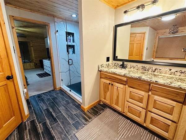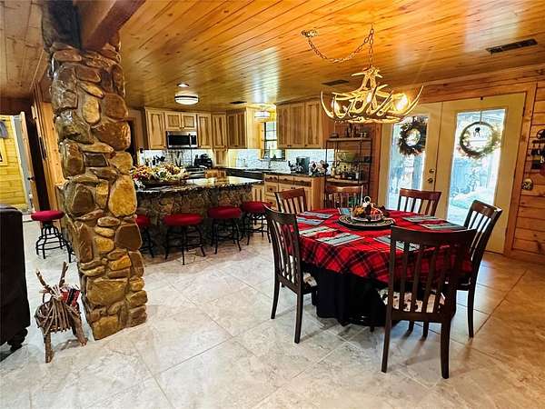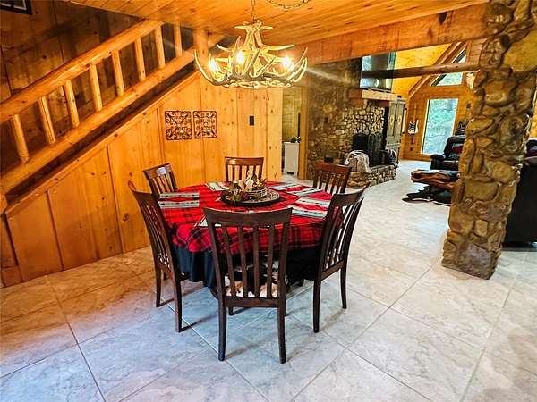 Nestled in the heart of nature, this stunning two-story log home offers the perfect blend of rustic elegance and modern comfort. With 4 spacious bedrooms and 3 bathrooms, this home provides ample space for both family living and entertaining. The picturesque property is surrounded by mature trees, offering both privacy and a serene atmosphere. A sparkling swimming pool beckons on warm days, while a nearby pond adds to the peaceful setting, attracting local wildlife such as deer, making this property a nature lover's dream. The property also features a large shop, ideal for hobbies or extra storage, and boasts a beautiful, welcoming entry that sets the tone for the entire estate. Whether you're enjoying the great outdoors or relaxing in the cozy interior, this home offers a true escape from the hustle and bustle of daily life.