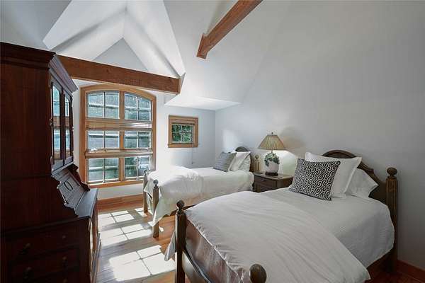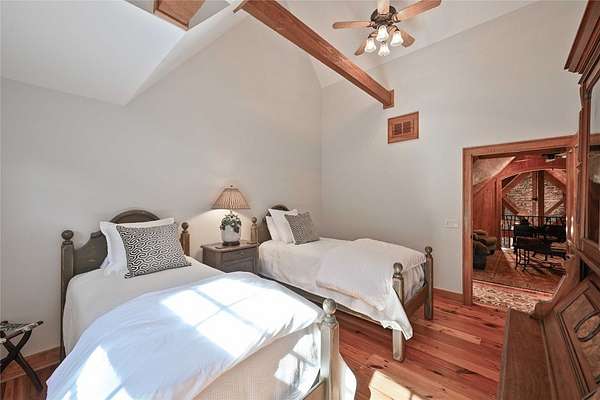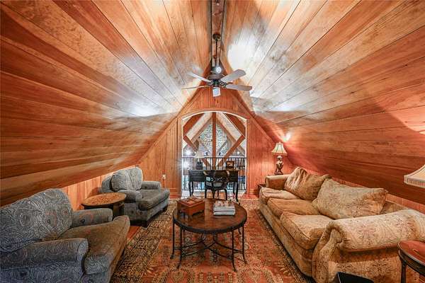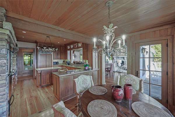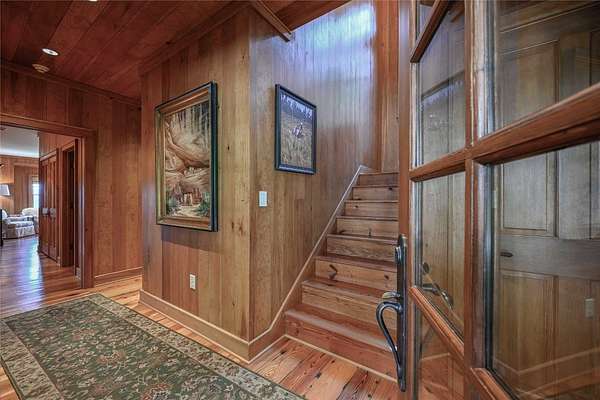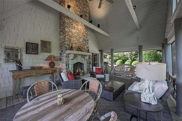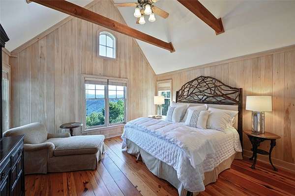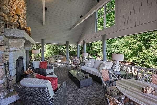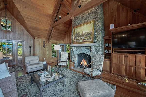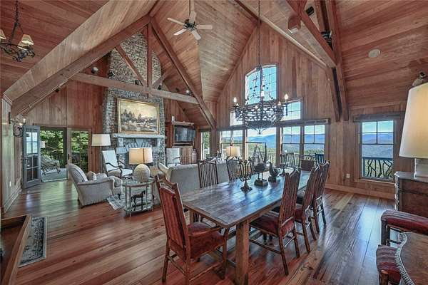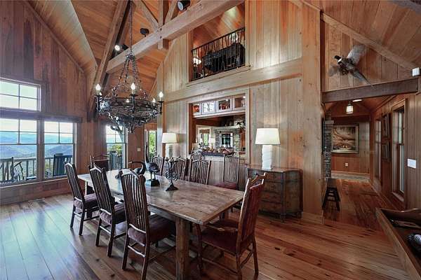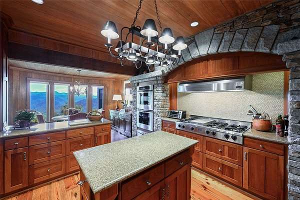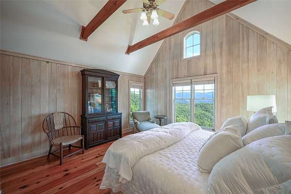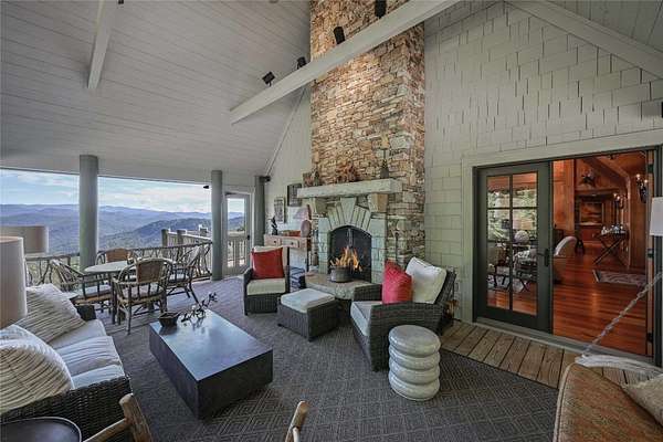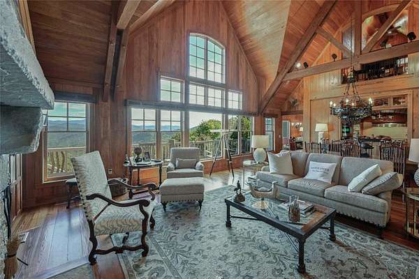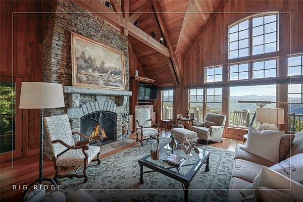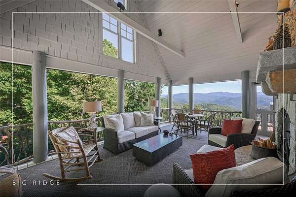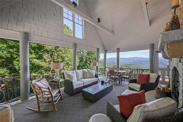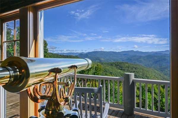 Conceived by the celebrated designer Tim Greene, this exquisite abode showcases unparalleled views of the majestic Great Balsam Mountains, whose beauty unfolds in endless layers before your eyes. A testament to meticulous planning and sophisticated design, every detail of this residence whispers of luxury and attention to detail, with upgrades subtly enhancing its every facet. Engage in the art of entertaining within a generous layout designed for the convivial host, boasting a primary suite on the main level that whispers of understated elegance, while the upper floor is graced with three impeccably appointed guest suites. An entrance drive that winds romantically through the picturesque landscape leads you to a pavered motor court offering ample parking for your prestigious guests. Upon entry, the great room unveils a canvas of warmth with light cascading gently over wide plank floors and beamed cathedral ceilings, while floor-to-ceiling windows frame breathtaking vistas. Interior and exterior stonework demonstrate unmatched craftsmanship, complemented by two formidable fireplaces that anchor the space with warmth and gravitas. The gourmet kitchen is a symphony of function and style, featuring custom cabinetry, generous countertops, and a suite of premium appliances, including a six-burner gas range and dual wall ovens, culminating in an environment where culinary excellence is not just possible but inevitable. Step out onto the screened living porch or expansive deck, and you'll find yourself enveloped in the serenity of the setting, the perfect backdrop for casual dining or sunset toasts celebrating the day's close. Perched at an elevation of 3,800 feet and nestled within over 13 acres of privacy, the property ensures an intimate living experience. With two wells, water storage tanks, and a generator, the residence stands prepared for any weather, offering peace of mind and continuous comfort. Additionally, a secure space on the lower level for UTVs, etc.