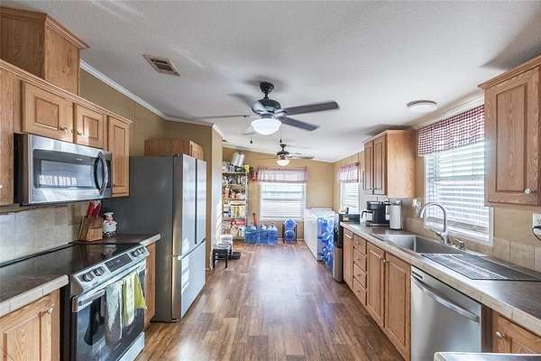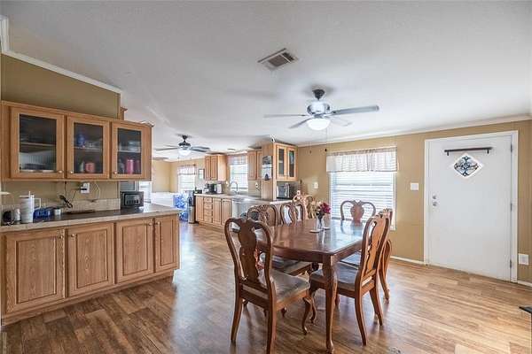 The main home features 5 bedrooms and 3 bathrooms, with an open concept layout and split bedroom plan, perfect for gathering and entertaining. New appliances that all convey with the property with acceptable offer. Plus an above-ground pool to enjoy Texas summers. A newer 2-bedroom, 2-bath manufactured home provides comfortable private living for extended family or tenants. Rounding out the property is a charming tiny house with 1 bedroom, 1 bathroom, kitchen, and living area, ideal for guests, rental income or Air B&B etc.