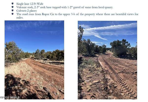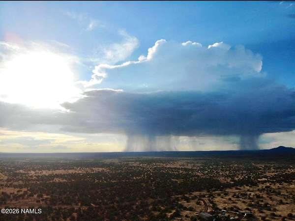 Your piece of paradise in Northern Arizona in desirable South Rim Ranch. Endless possibilities in this 36 acres loaded with junipers and pinions and year round access. Ideal location for your dream home or your summer retreat. Enjoy nature, gorgeous sunsets and star gazing in this parcel with breathtaking view of the mountains including San Francisco Peaks. Seller already completed improvements like roads & culverts and installed a 2500 gal cistern. Two sheds included, one insulated, with flooring, wraparound porch and 5 solar panels. A Kubota Backhoe goes with the property! Bing your toys, only one parcel away from State Traust Land.
