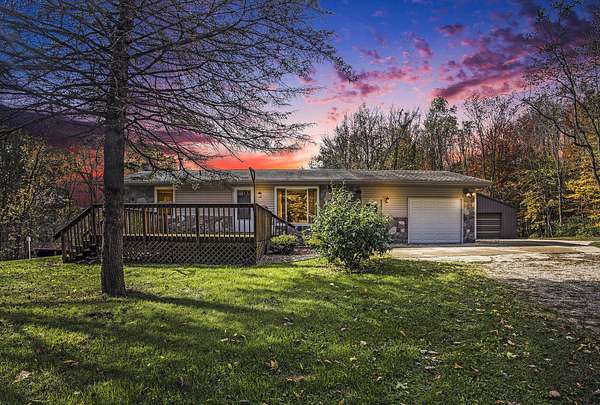 Wooded acreage, large yard, extra garage, pole barn and a house with lots of space, what more could you ask for in one setting. This home is set back off the road for lots of privacy. The deck's off the front and back of the home is a great feature, beautiful sunsets off the back deck. This four bedroom (2 are non-conforming in basement), 2 full bath home has been well maintained for the last 30 years but the seller is offering a one year home warranty. You also have plenty of garage space, 1 stall attached, 2 stall second garage (24 x 24) and a 40 x 24 pole barn. Roof on house was new 10 yrs ago and new floors 5 yrs ago. The basement could be considered an in-law apartment or just enjoy the extra living space with the large slider out to another patio. As you enter the home you have a large mud room that can also work as office area. This is the whole package, don't miss your opportunity to see this 17 acre home stead today.