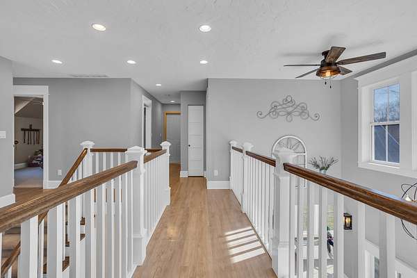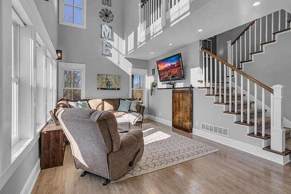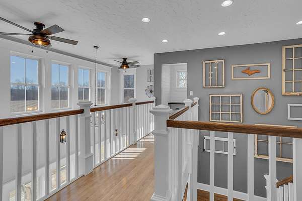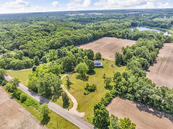 CUSTOM COUNTRY ESTATE ON 1.87 ACRES WITH WRAP AROUND PORCH & GRAND ENTRANCE. Step inside this timeless 3BDRM/2BA home! Beautiful kitchen featuring elegant white cabinets, butcher block counters w/breakfast bar, apron farmhouse sink & true walk-in pantry! SS appliances included. Dining alcove w/vaulted ceiling & built-in bench seating surround the sliding glass door leading to the deck. The second level captures stunning elevated country landscape views across a catwalk landing w/overlook to the living rm creating an open & airy feel. Finished lower level w/home gym & rec space, great storage & private exterior entry. Bonus space of approx 840+ sq ft has been studded-in (electric, plumbing & ductwork already in place) w/the vision of a primary ensuite. Above ground pool & garden space.
