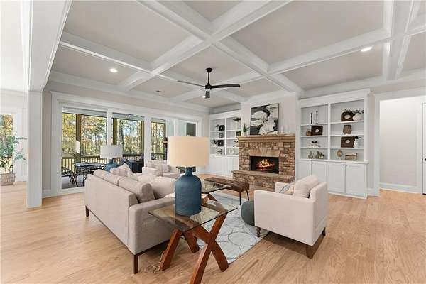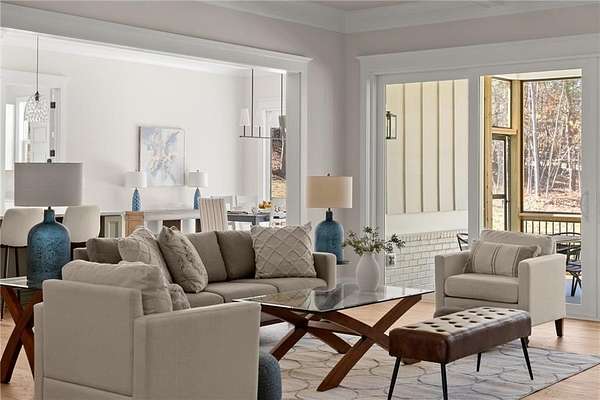New Construction home with no HOA & light covenants! This is the last of three new estate lots close to Lake Lanier. Spacious and bright Oconee Plan on a slab. 4 bed/4.5 bath on 1.925 acres. Highly desired East Forsyth school district. Home features many upgrades such as stainless steel appliances and 48" dual fuel range, upgraded trim, custom cabinetry, a coffee/wine bar and 10' ceilings with 8' doors. Enjoy the stone fireplace in the family room or a second fireplace on the screened patio overlooking your backyard. Outside, there's an attached 3 car side entry garage, natural brick water table and a wonderful yard for entertaining. This home is also built to accommodate a pool! Your dream home is being built now!