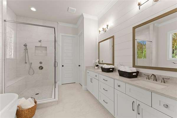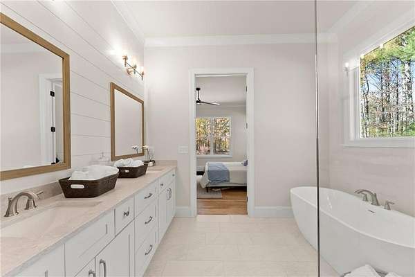 - Crown Molding, Double Vanity, Entrance Foyer, High Ceilings 9 ft Main, Walk-In Closet(s)