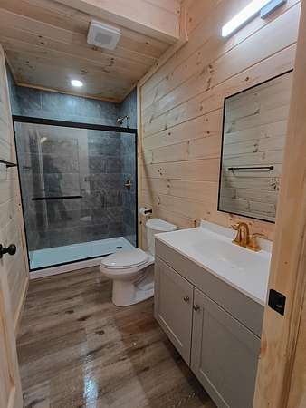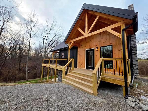 Currently Under Construction! Amish-built 3BR, 2BA luxury cabin on approx. 2.5 wooded acres (to be surveyed off). Completion date January 31, 2026. Features vaulted ceiling, handcrafted finishes, walk-out basement, balcony with wooded views, aluminum metal roof, electric fireplace, 48,000 BTU mini-split HVAC, luxury vinyl flooring (LVF) throughout, and tile showers. Outdoor amenities include a firepit, 19x24 dining area off the balcony, patio and outdoor shower area off the walk-out basement. Perfect as an investment property, short-term rental, or private weekend retreat. Experience rustic elegance and modern comfort in a serene, wooded setting.
