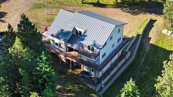 MLS# 290207 Perched on 20.14 acres, this custom-built home showcases panoramic views from every window & a wrap-around deck designed to take it all in. Overlooking Scott Canyon w/ wide open mountain vistas & crisp, clean air--just 20 miles from town conveniences. Boasting 2,468 square feet of quality living space w/ cathedral ceilings, solid wood floors, a chef's kitchen, great room w/ wood stove, dining room w/ deck access, loft area, 3 guest rooms, a spacious primary suite complete w/ a jetted tub & walk-in shower & 2 more bathrooms. The lower level includes a 3 car garage, a utility room w/ a custom water system & a dog grooming shower. The land offers a pasture area w/ the potential for additional clearing, outbuildings & RV parking. Welcome home!
