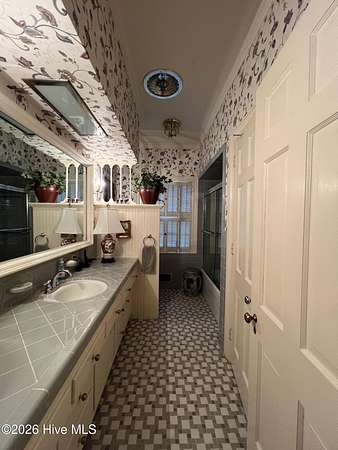 - Basement, Blinds/Shades, Bookcases, Entrance Foyer, Kitchen Island, Master Downstairs, Solid Surface, Walk-In Shower