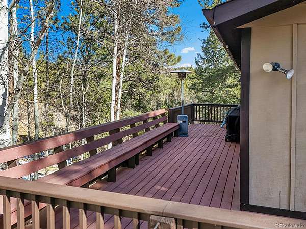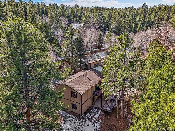 Tucked into 2.28 acres of towering pine and shimmering aspen, this mountain retreat offers the kind of privacy that’s hard to find and even harder to leave. Surrounded by nature, the property feels like your own peaceful sanctuary, where wildlife sightings are part of everyday life and the only soundtrack is the breeze moving through the trees. The home offers 1,580 square feet of finished living space with two bedrooms and two bathrooms. The main level features an open layout where the kitchen, dining, and living areas flow together seamlessly. Large windows frame forest views and fill the space with natural light, while easy access to expansive deck areas makes indoor outdoor living effortless. Whether it’s morning coffee among the aspens or dinner under the stars, the setting delivers privacy in every season. The lower level provides a spacious and versatile great room ideal for a second living area, media space, office, hobby room, or future bedroom, along with an additional bath. It’s a flexible layout designed to grow with your needs. Outdoor living truly shines here. Multiple deck and patio spaces create private pockets for entertaining, relaxing, or simply watching wildlife wander through the trees. The beautiful lot blends mature pine with abundant aspen, offering year round greenery and stunning bursts of gold in the fall. Car enthusiasts, hobbyists, and creatives will appreciate the generous parking with both attached and detached garages. The detached garage also includes approximately 320 square feet of finished space above, perfect for a studio, workshop, creative retreat, guest overflow, or private office. With ample parking and room to spread out, this property combines functionality, flexibility, and exceptional privacy in a truly special mountain setting.