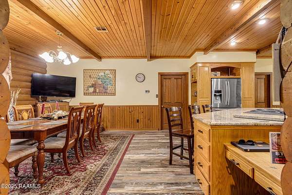 Discover a rare sanctuary at 638 Lenora Road, an extraordinary 38-acre estate nestled in the pastoral beauty of Acadia Parish. This architectural masterpiece--constructed from hand-selected England Spruce logs harvested in the Rocky Mountains--embodies a seamless harmony of craftsmanship, character, and comfort.Within its 5,548 square feet, the residence reveals four bedrooms and four baths, each space curated with an appreciation for balance, flow, and natural warmth. Designed for those who value both solitude and celebration, the home's thoughtful amenities include a billiard and bar room, expansive outdoor kitchen, and private guest quarters, all crafted to inspire effortless hospitality.Beyond the main residence, a 60x60 metal building stands ready to accommodate the demands of South Louisiana living--from tractors and trailers to the tools of a working estate. Whether envisioned as a distinguished primary home or an idyllic retreat, this property invites you to experience a life both grounded and grand.Back on the market due to buyer's financing falling through.