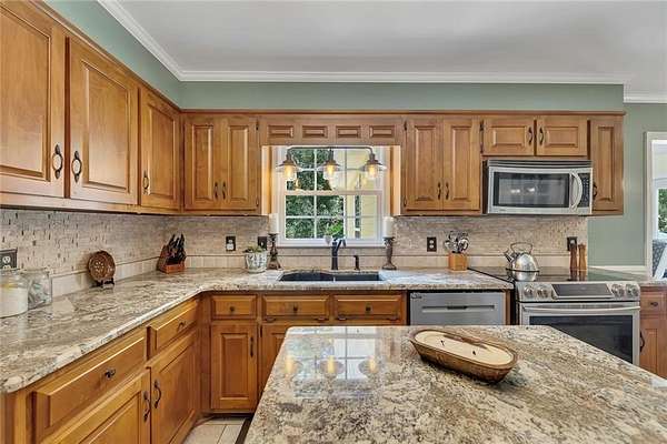 From 400- Take exit 17 east to Settingdown Rd. Proceed to the roundabout/traffic circle and take the first exit onto Martin Road. Turn right onto GA-9 N / Atlanta Highway. After about 0.7 miles, turn left onto Oak Grove Circle. Turn right onto Concord Road. Home will be on your right.