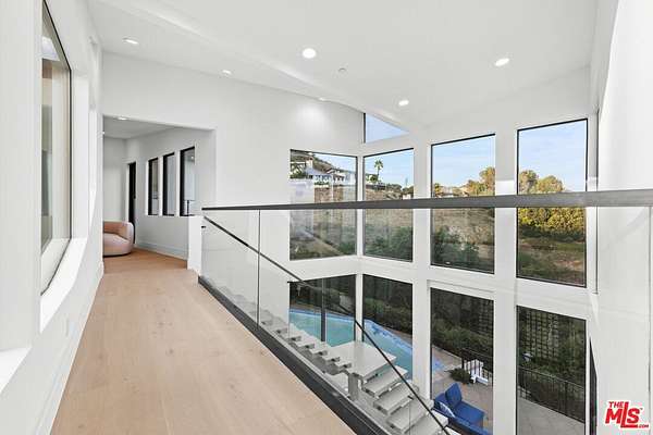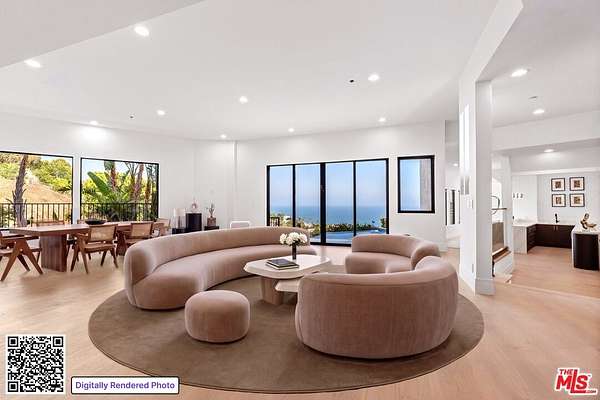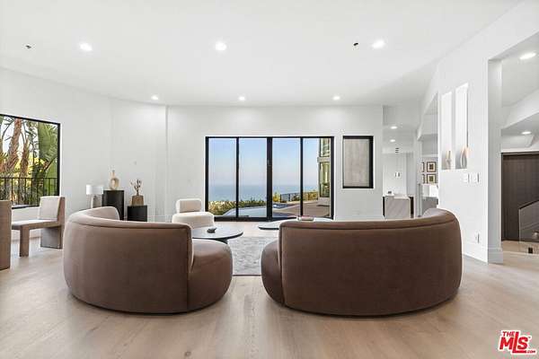 Ideally situated in a prime central Malibu location, this luxurious architectural estate offers appx. 7,400 sq. ft. of refined living space with stunning ocean, coastline, and city light views. Situated on nearly 2 acres within the gated Meadows Court enclave - home to a collection of notable estates and high-level wellness retreats - the property provides a rare combination of privacy, scale, and versatility making it ideal for a family compound, executive retreat, corporate relocation option or wellness-center. Designed with expansive, light-filled interiors, the clean open-concept layout creates an atmosphere that is both elevated and inviting. A beautifully appointed chef's kitchen with top-tier stainless steel appliances anchors the home, flowing seamlessly into generous living room suited for both everyday comfort and sophisticated hosting. Rich hardwood floors run throughout the home, complemented by huge picture windows, and sliding glass framing amazing ocean views. The thoughtfully designed floor plan with upstairs and downstairs family rooms and separate bedroom wings allows for both shared and private living experiences. The residence features an ultra-luxurious primary bedroom suite with fireplace, a spa-inspired marble bathroom with soaking tub and oversized shower, plus a custom-designed closet and private terrace. There are six additional generous en-suite bedrooms. The scale and layout offer exceptional flexibility for extended stays, guests, or staff while a detached guest house with kitchenette and an expansive lawn area provides additional accommodations. Outdoors, the setting is peaceful, private and resort-like, with an infinity pool and spa, manicured grounds, and multiple areas to relax and enjoy nature in a coastal surrounding. There is more than ample parking with two separate two-car garages plus additional onsite parking for another 15 - 20 vehicles. All just moments from Malibu's most iconic beaches, fine dining, and boutique shopping, this is a rare opportunity to lease a secure property behind two sets of gates that seamlessly blends luxury, comfort, and versatility in one of Malibu's most desirable central locations.