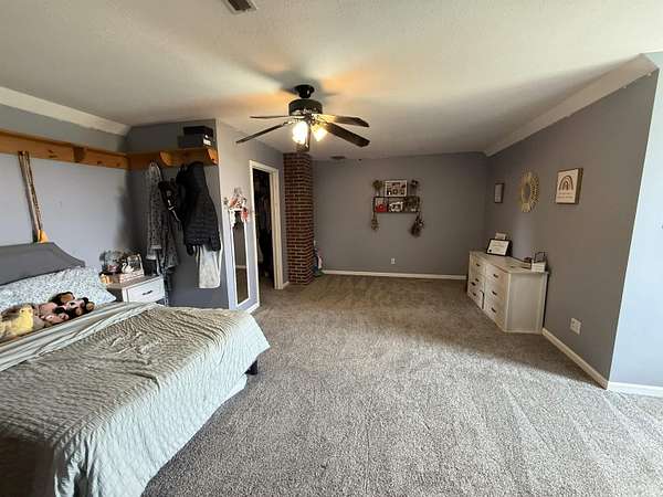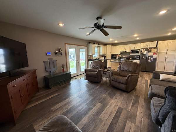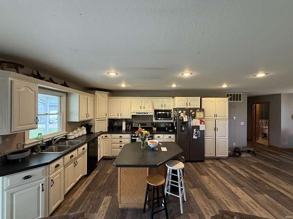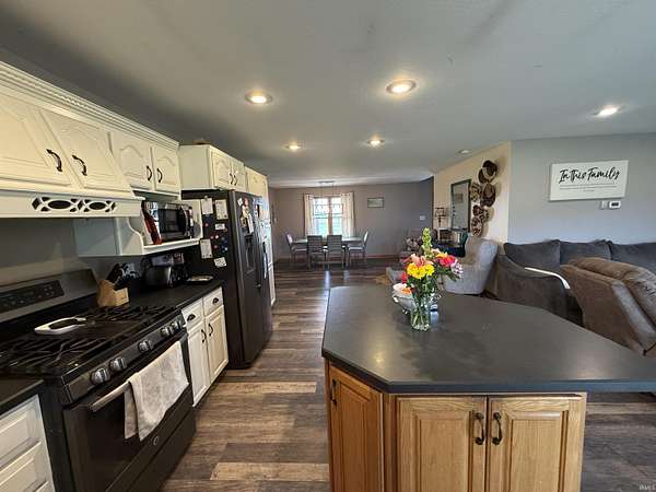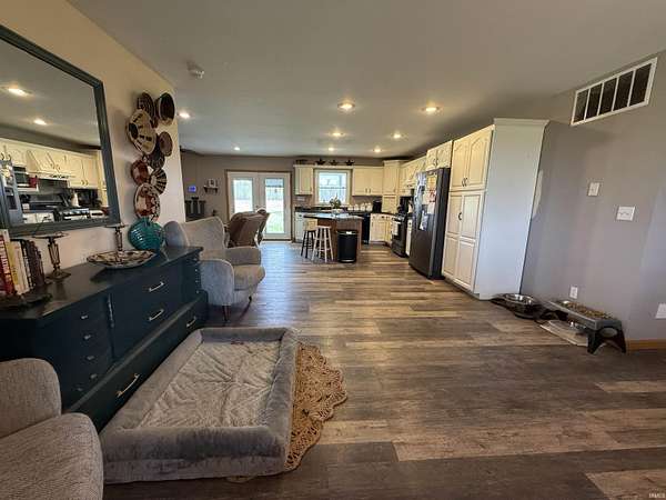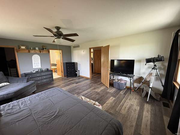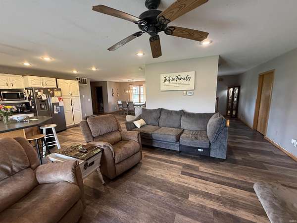 Set on nearly five acres of open, usable land, this home delivers space, freedom, and versatility in every direction. Built in 2000 and thoughtfully expanded, it spans more than 4,100 square feet across the main and upper levels plus a partially finished basement that gives you even more room to live, play, or entertain. Step inside and feel the scale. The main floor flows naturally from a welcoming dining and living room area. The kitchen is fitted with white cabinetry, a beautiful range hood, and an island designed for casual breakfasts or late-night conversations. Vinyl flooring and carpeting define the main level, keeping things stylish and comfortable. The laundry and half bath sit conveniently off the kitchen, leading into a huge bonus suite over the garage, complete with a walk-in closet, ideal as a bedroom, or game room. The primary suite is a statement of its own: spacious, calm, and complete with a large walk-in closet and bathroom featuring tile flooring, a garden jacuzzi tub, and a separate shower. Upstairs, two more oversized bedrooms, each with walk-in closets. They share a full bath between them. Downstairs, the partially finished basement adds even more potential. Drywalled walls, carpet, a unique brick-built shower, and a wood-burning stove bring both comfort and character. There’s also an additional framed-in room ready for your imagination. Outside, everything comes together for true country living. The front porch invites you to slow down, while the massive back porch is made for gatherings and takes full advantage of the views and wide-open land. The home’s exterior features vinyl siding and a roof installed recently. The main and upstairs areas are serviced by their own HVAC system, which includes a updated unit in the upstairs. For the hobbyist, entrepreneur, or collectors, two incredible pole barns take this property to another level—one measuring 30x74, the other 30x40, both with concrete floors. The 30x40 barn even includes dual 12x40 lean-tos on each side, giving you all the covered storage you could ask for. With a deep 32x30 2 car attached garage, expansive interiors, and multiple outbuildings, this property balances functionality, comfort, and opportunity. It’s not just a home—it’s a lifestyle waiting to be lived.