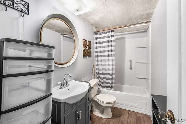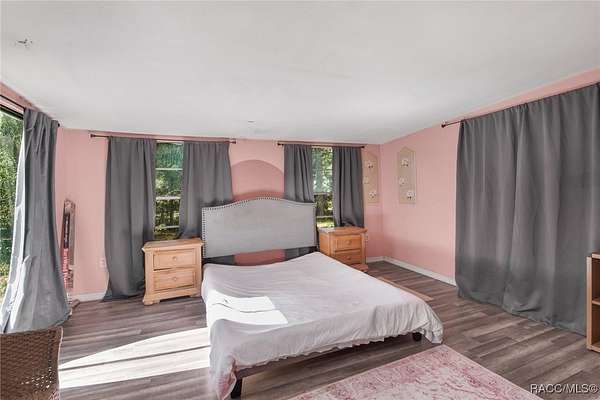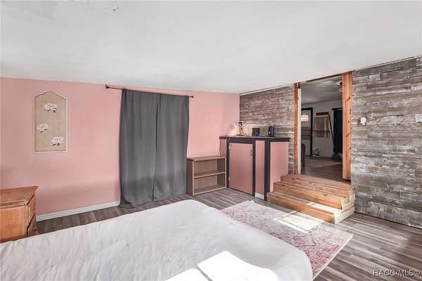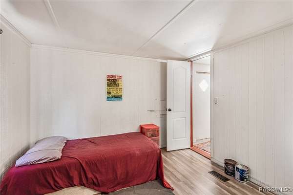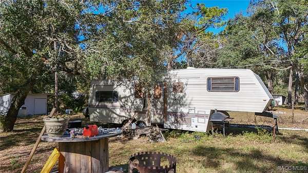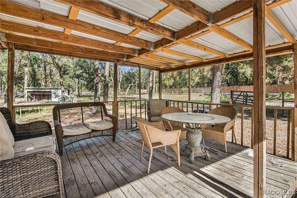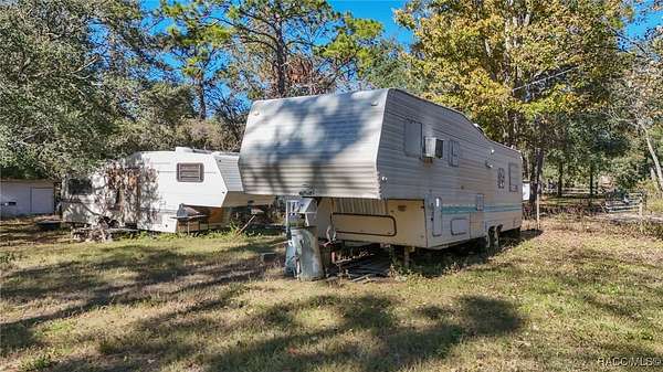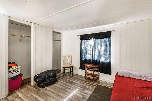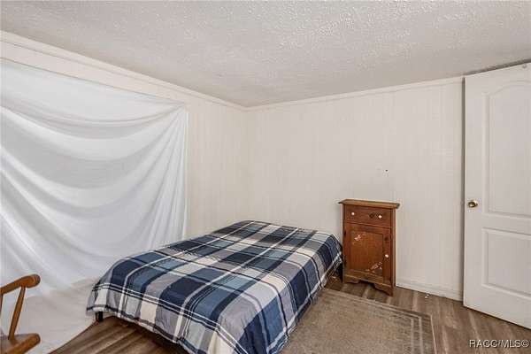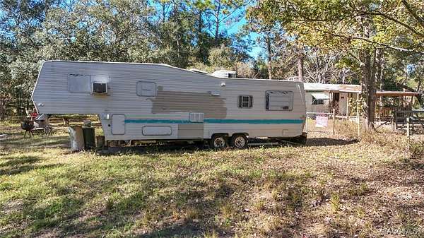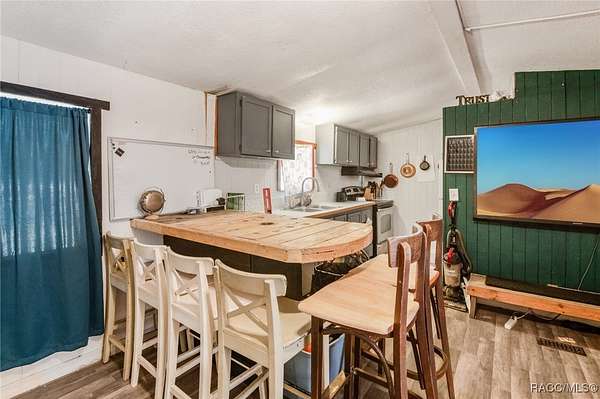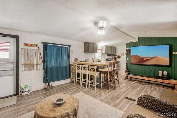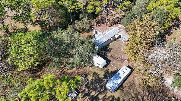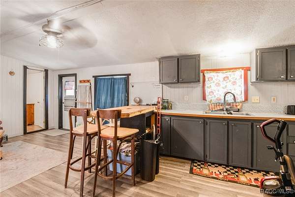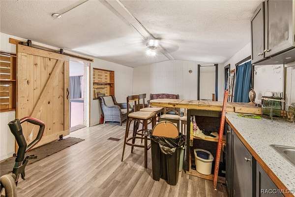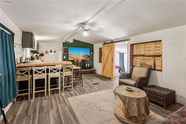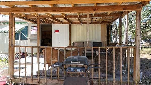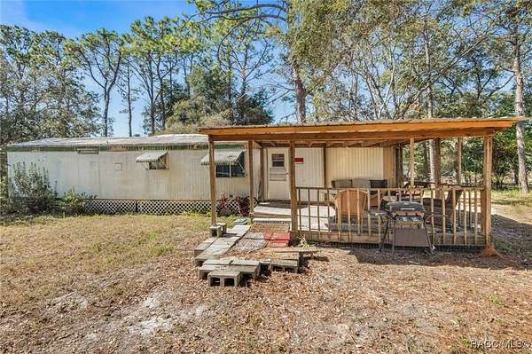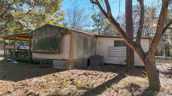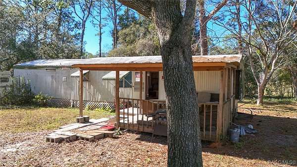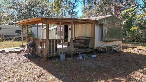 Large 1.6- acre lot with a refreshed singlewide mobile home and a few outbuildings (excluding travel trailers) give you plenty of room for larger parking requirements! Drive a tractor-rig? Parking is no problem. Need a hub to strategically stage heavy equipment? No problem. Go ahead and invite your RV friends to camp over the weekend, again, no problem. With 1.6 acres and access from three streets, maneuverability of large vehicles just isn't a problem! The home had a new A/C unit installed in 2023 and a new well was drilled the same year. Replaced bathroom fixtures along with luxury vinyl plank give a fresh look and feel to the one and only bathroom. The LVP floors run throughout the home adding style and ambiance to the larger common living areas. The kitchen is updated with bold color cabinets and a natural wood barn door separates the step-down addition to the main living area. The addition is currently being used as a bedroom but could be a multi-purpose room with sliding glass doors out to the backyard. Tasteful application of wood plank on accent walls and breakfast bar creates the rough-neck vibe in a peaceful, personable, and enjoyable space. Your space expands outside under the covered raised deck patio to enjoy however and whenever you like.