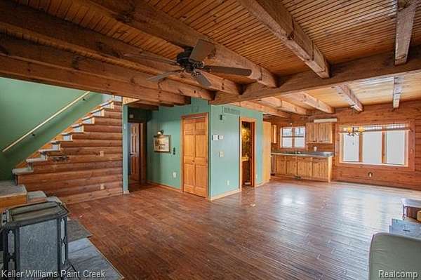 Welcome Home to one of Lenox's Premier Properties! This is Country Living at it's Finest. Absolutely Gorgeous Custom Log Built Home on 10+ Sprawling Acres. Home features Covered Wrap Around Porch and Large Deck looking over your Extra Deep Pond perfect for your Morning Coffee or Evening Libation. Wood Burning Stove in Living Room. Spacious Primary Bedroom on Main Floor with En-Suite and tons of Closet Space. Both upstairs Bedrooms are Very Spacious with Abundant Light. Ample Space on Landing between Upstairs Bedrooms for your Home Office including a 2nd Floor Laundry Room. Beautifully Finished Basement, boasting 2 Additional Large Bedrooms including plenty of room for your Man Cave, perfect for your Overnight Guests. Massive 3 Car Garage, 20x30 Pole Barn with Horse Stalls. Brand New Metal Roof with Lifetime Guarantee that is transferable to New Owner. Brand New Well with Top of the Line R/O system. This Property is the perfect Blend of Modern Conveniences and Country Charm. Must see to Appreciate.