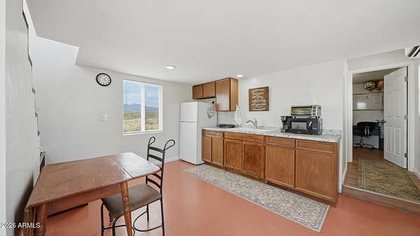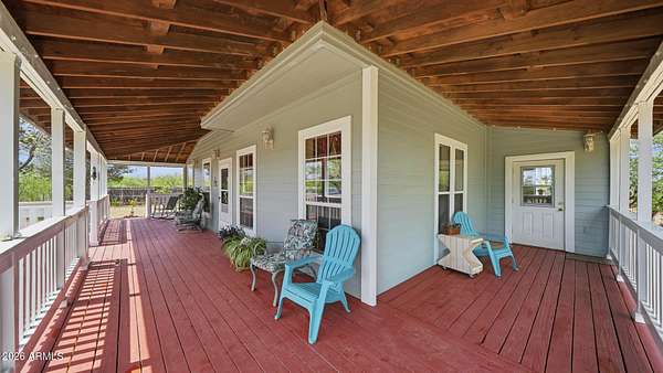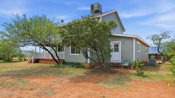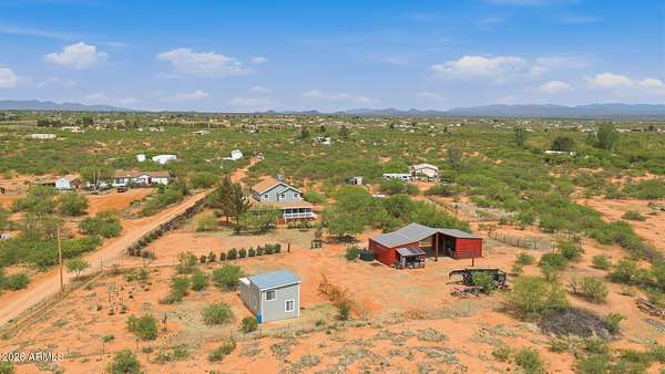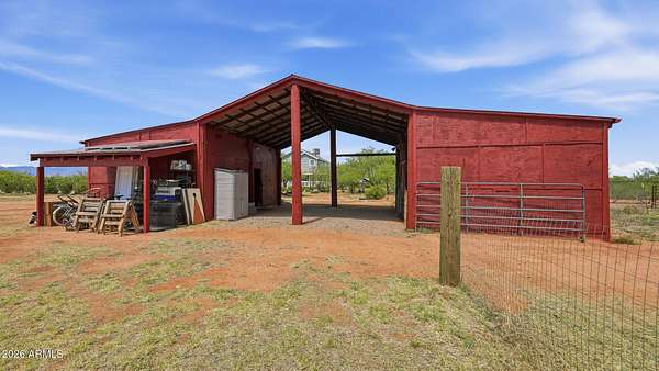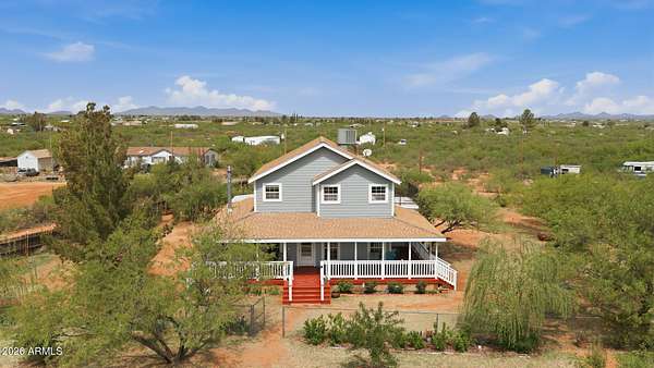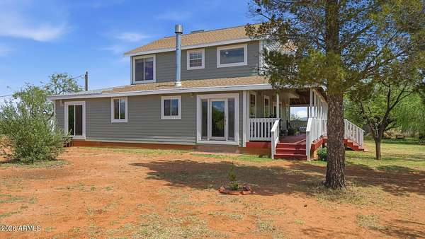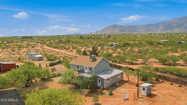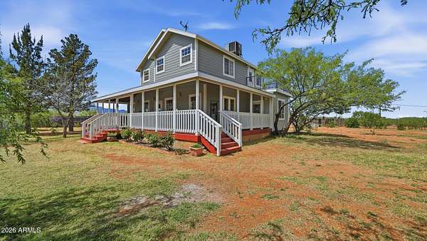 On 4+ acres, this NEWLY RENOVATED farmhouse style home, features a stunning wrap around porch, is any homesteader, gardener, or equine enthusiast's dream! Main floor is an open concept living room, eat in kitchen, and formal dining room. Main floor bdrm has outside entrance, laundry room, full BA and an office. 2nd floor has a large primary bdrm suite with a balcony to see the stunning mountain views! Property includes a 2 bdrm, 1 BA guest house that could be a rental! Has 2 stall barn with workshop, large enough for covered parking, enclosed chicken run. Has round pen, 2 RV hook ups, 25+ shade/fruit trees, irrigated/enclosed garden, green house, irrigated area for large crops, grapes w/lovely arbor, 90% of landscaping is on watering system. Too many new renovations to list! A MUST SEE! Features stunning views of the Huachuca Mountains and located less than 20 miles of Fort Huachuca. Ask your agent for the complete, very long list if additions and renovations.